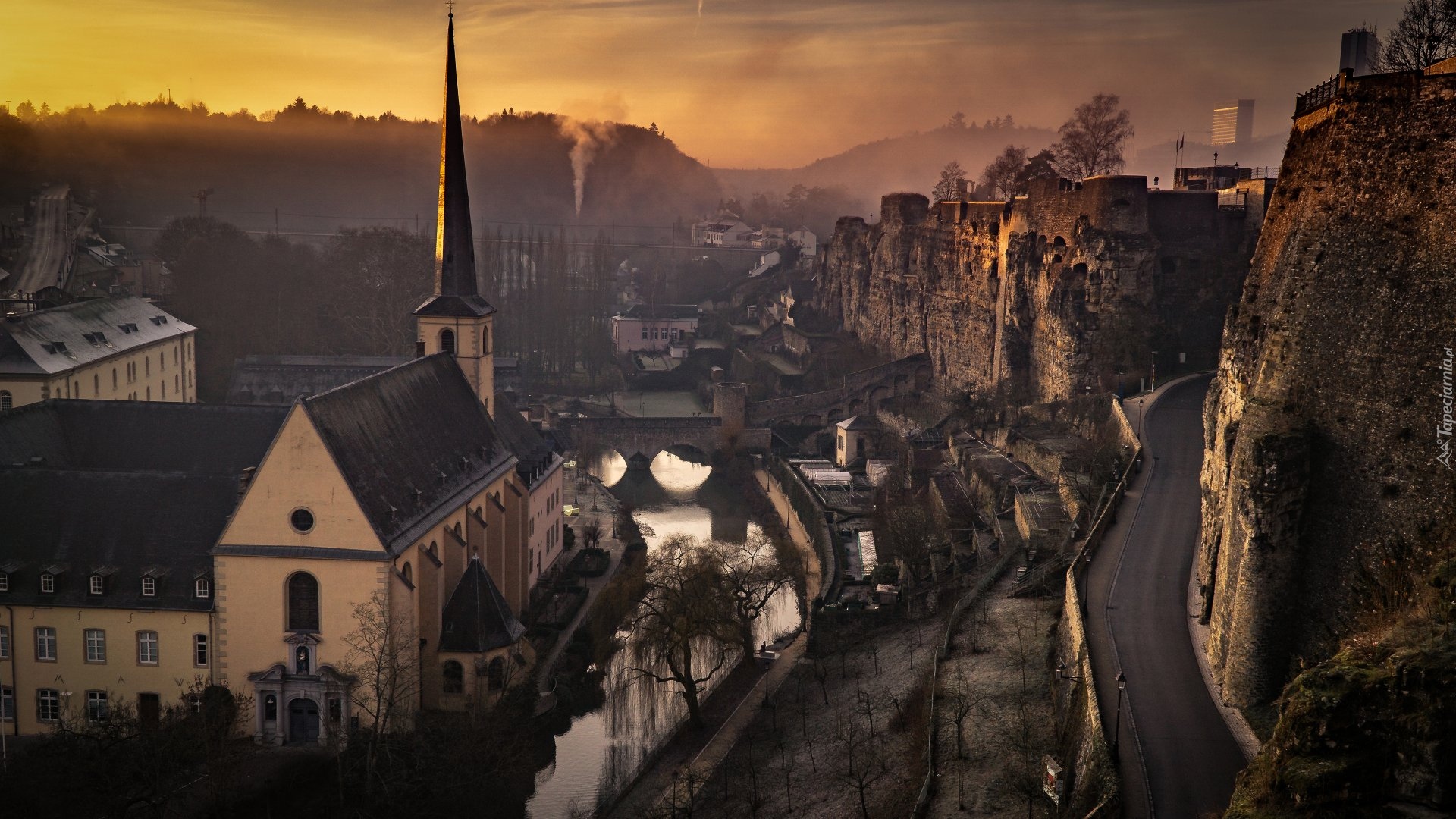 Edytor tapety: Kościół nad rzeką Alzette w Luksemburgu