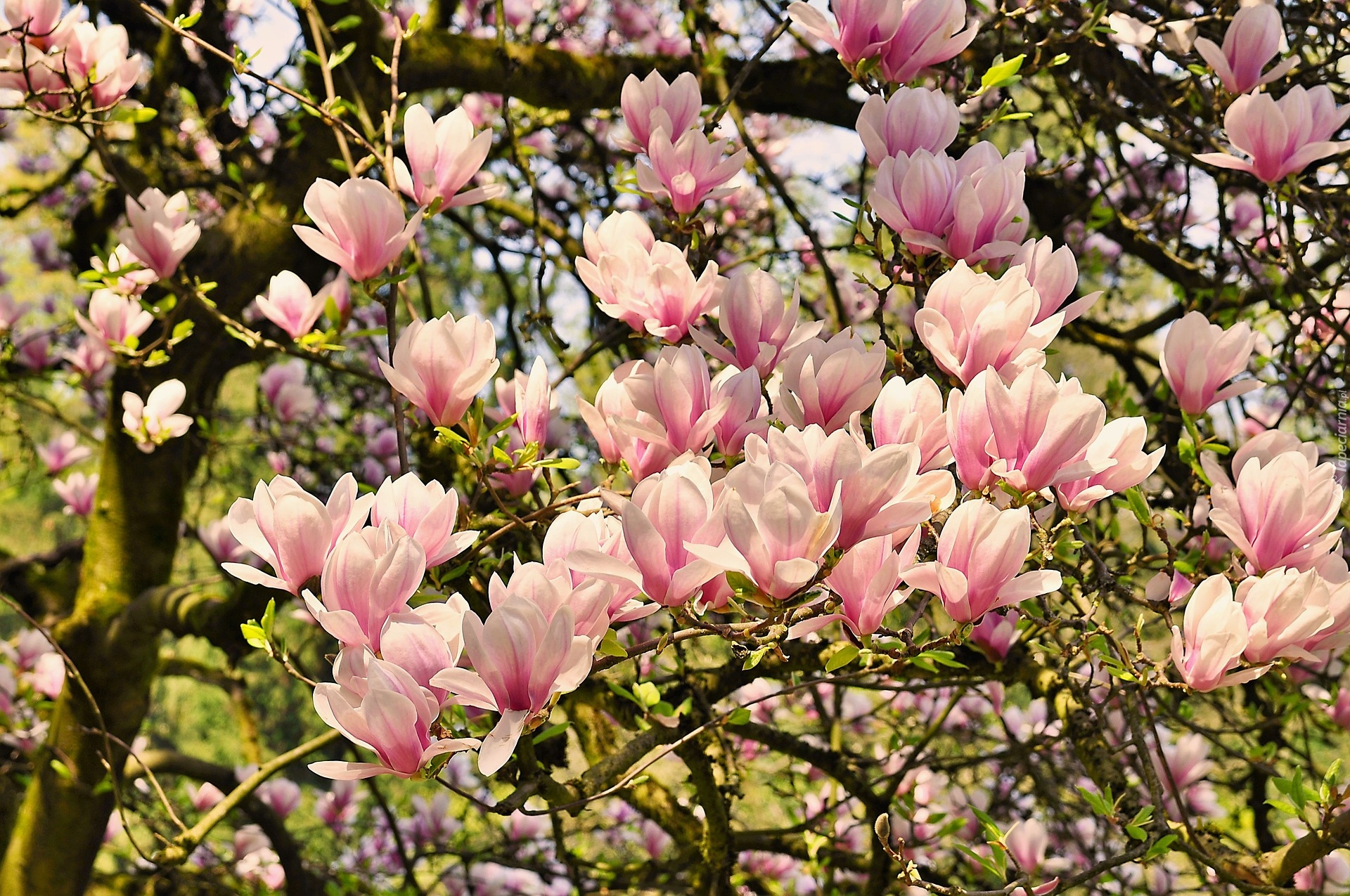 Edytor tapety: Rozwinięte kwiaty magnolii wiosną