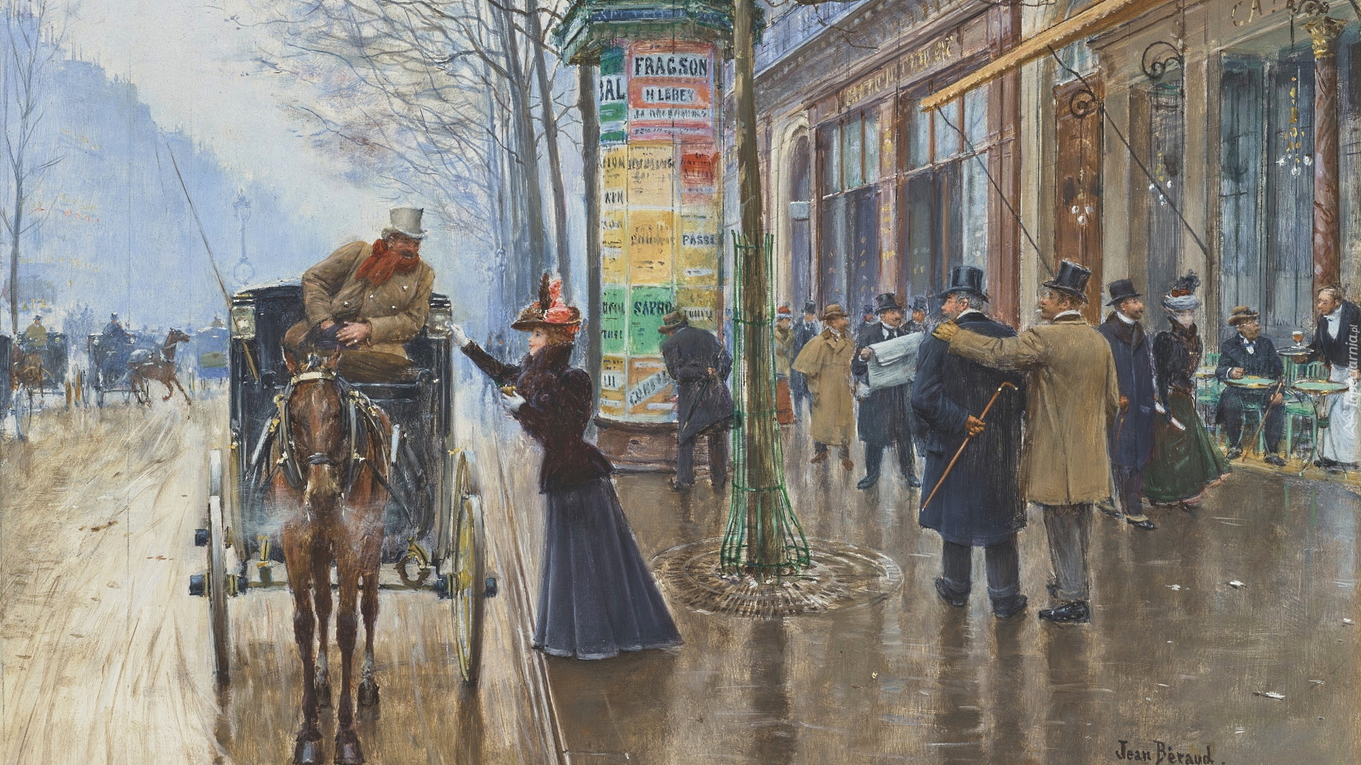 Edytor tapety: Kobieta przy dorożce na obrazie Jeana Berauda