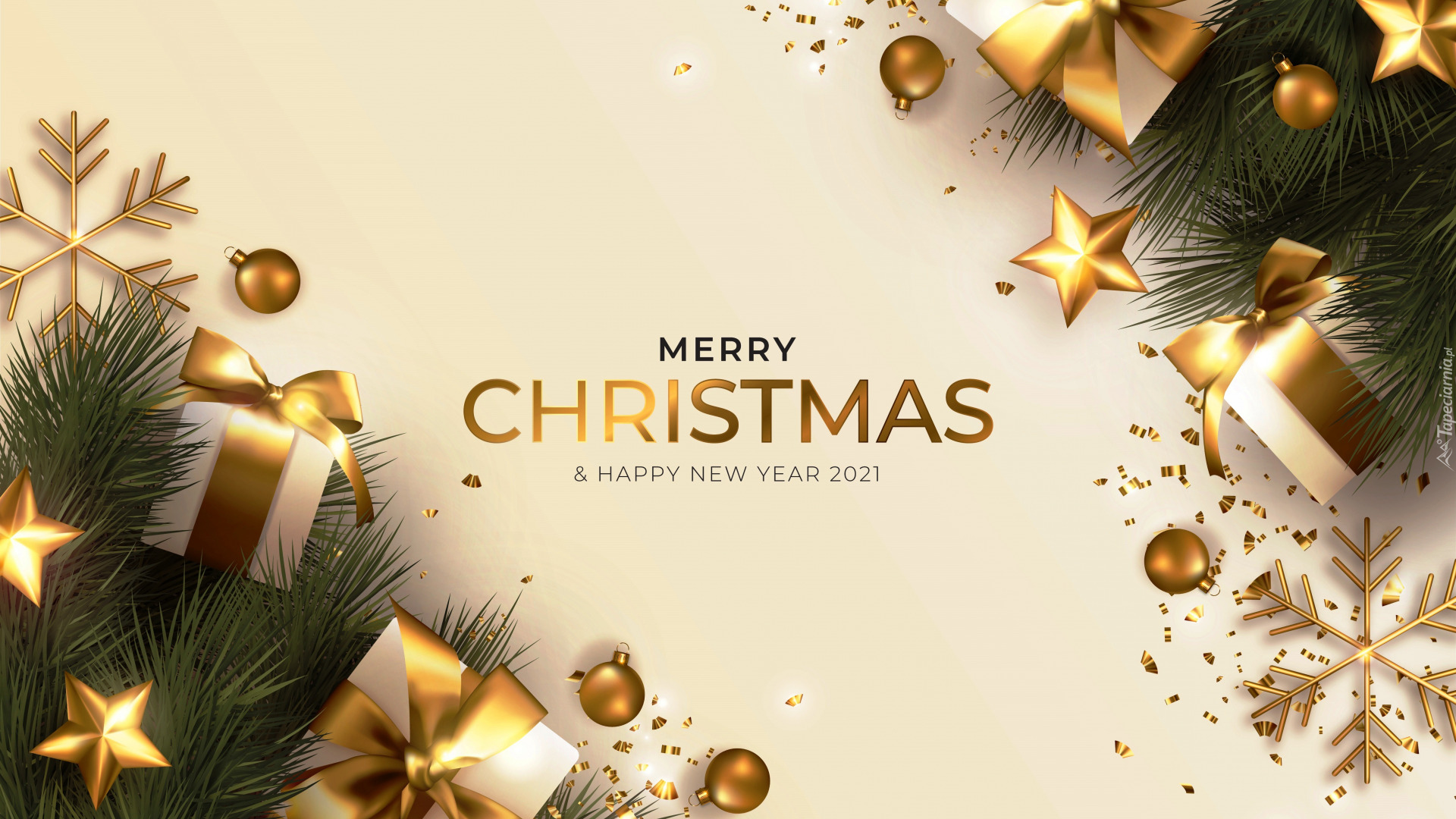 Edytor tapety: Życzenia świąteczne i noworoczne obok udekorowanych gałązek