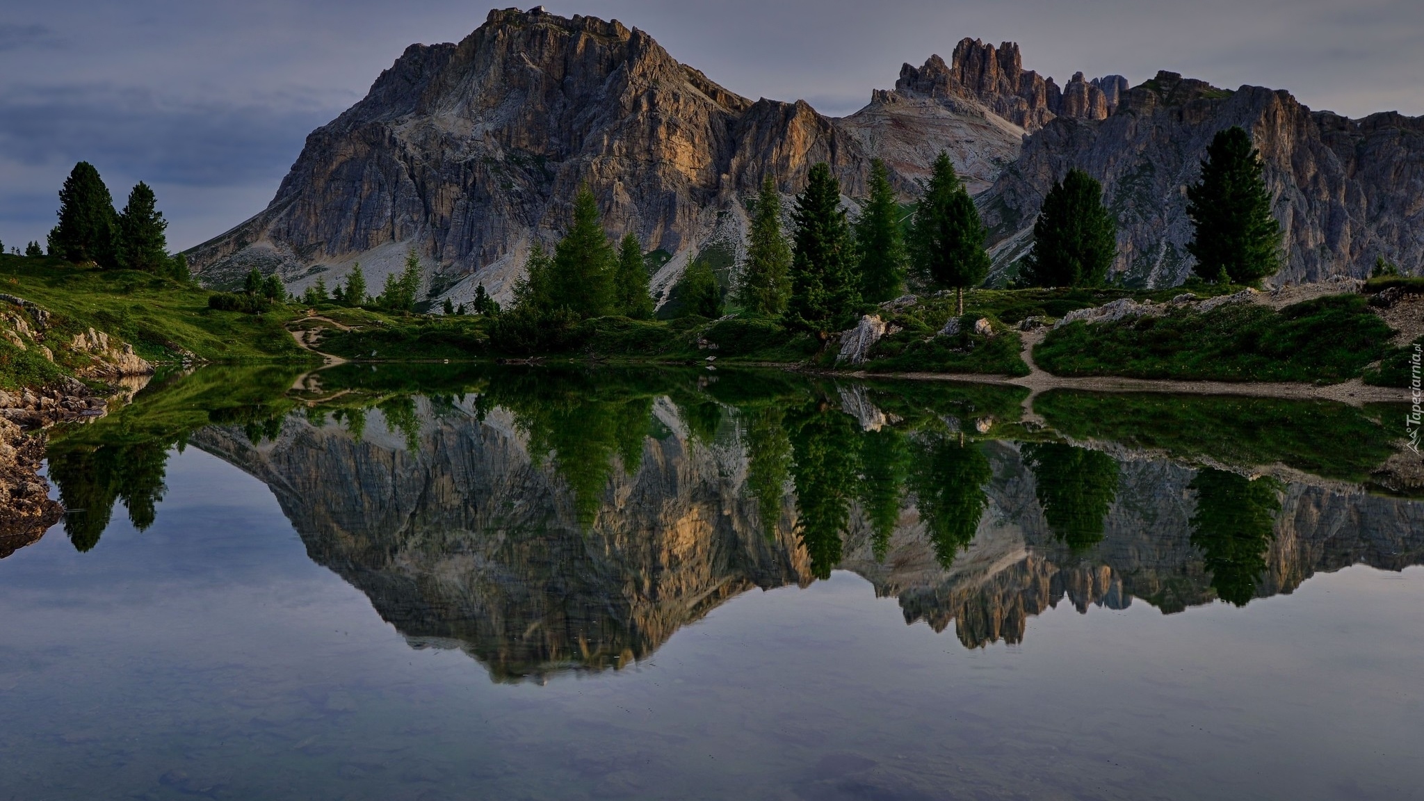 Edytor tapety: Odbicie Dolomitów w jeziorze Limides