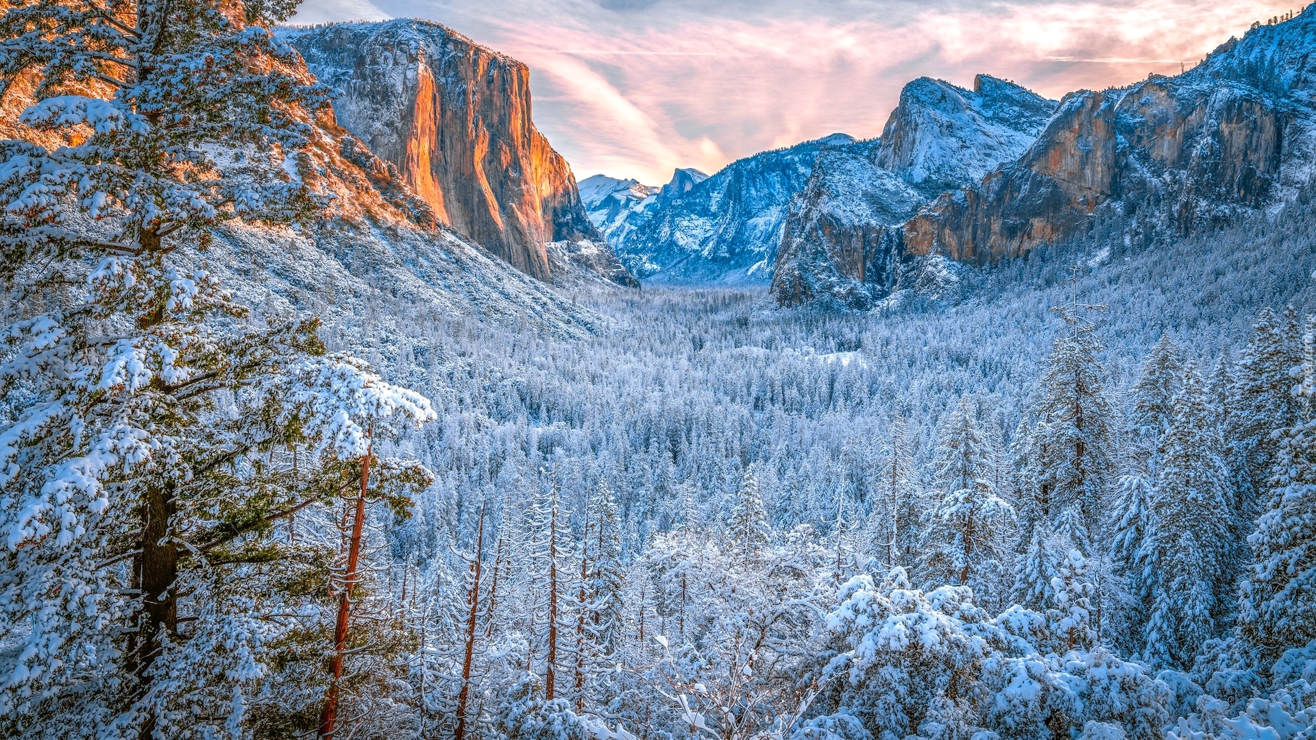 Edytor tapety: Ośnieżone lasy w dolinie Yosemite Valley