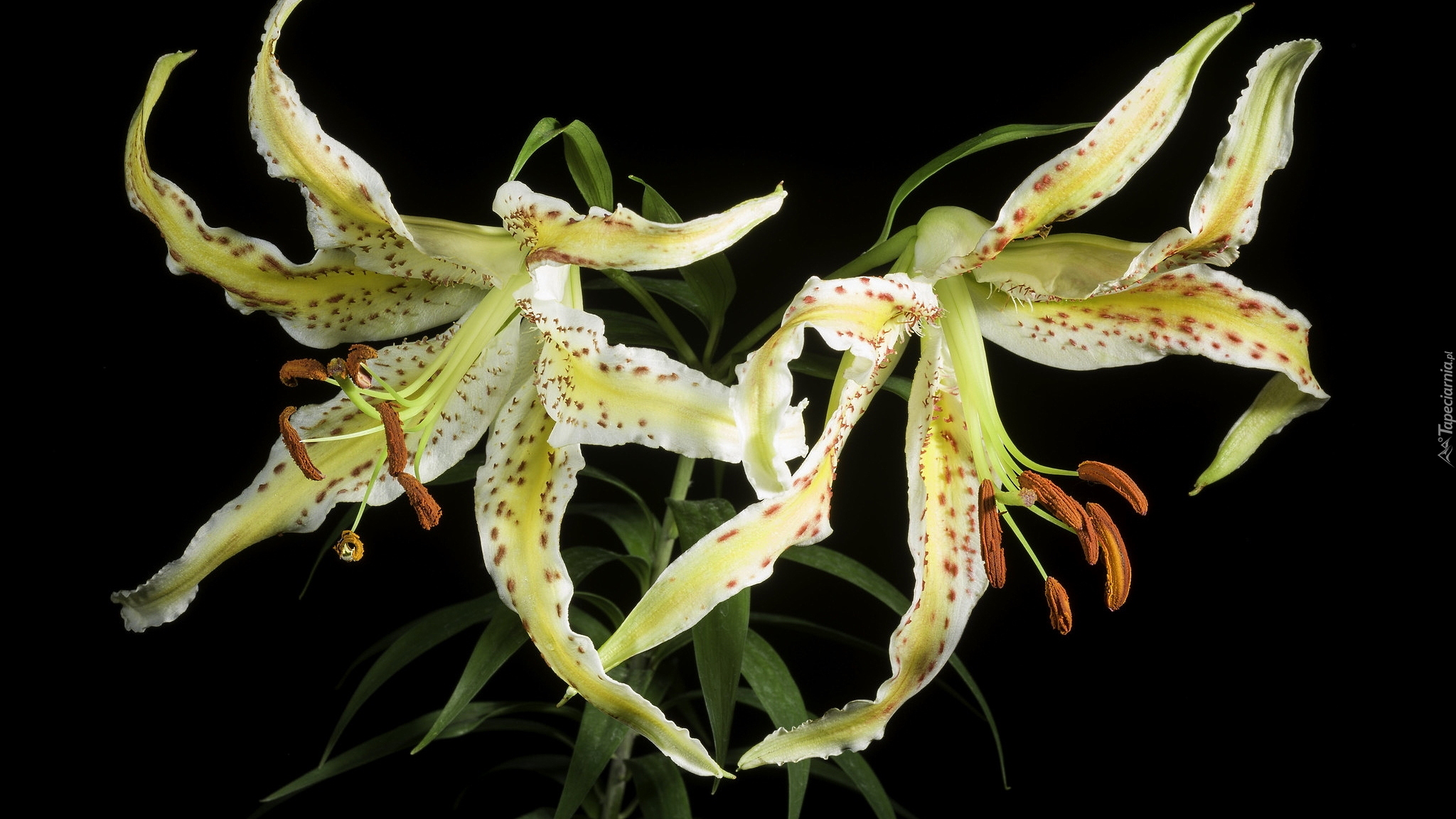 Edytor tapety: Lilie pozłacane na czarnym tle