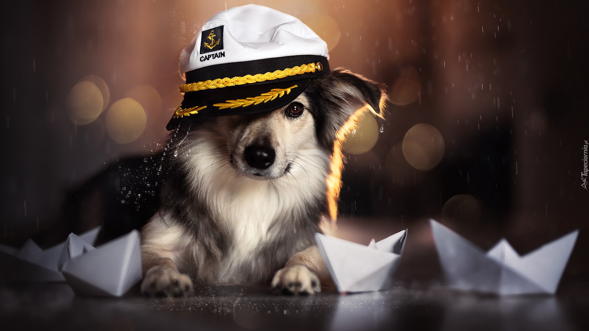 Edytor tapety: Pies w kapitańskiej czapce