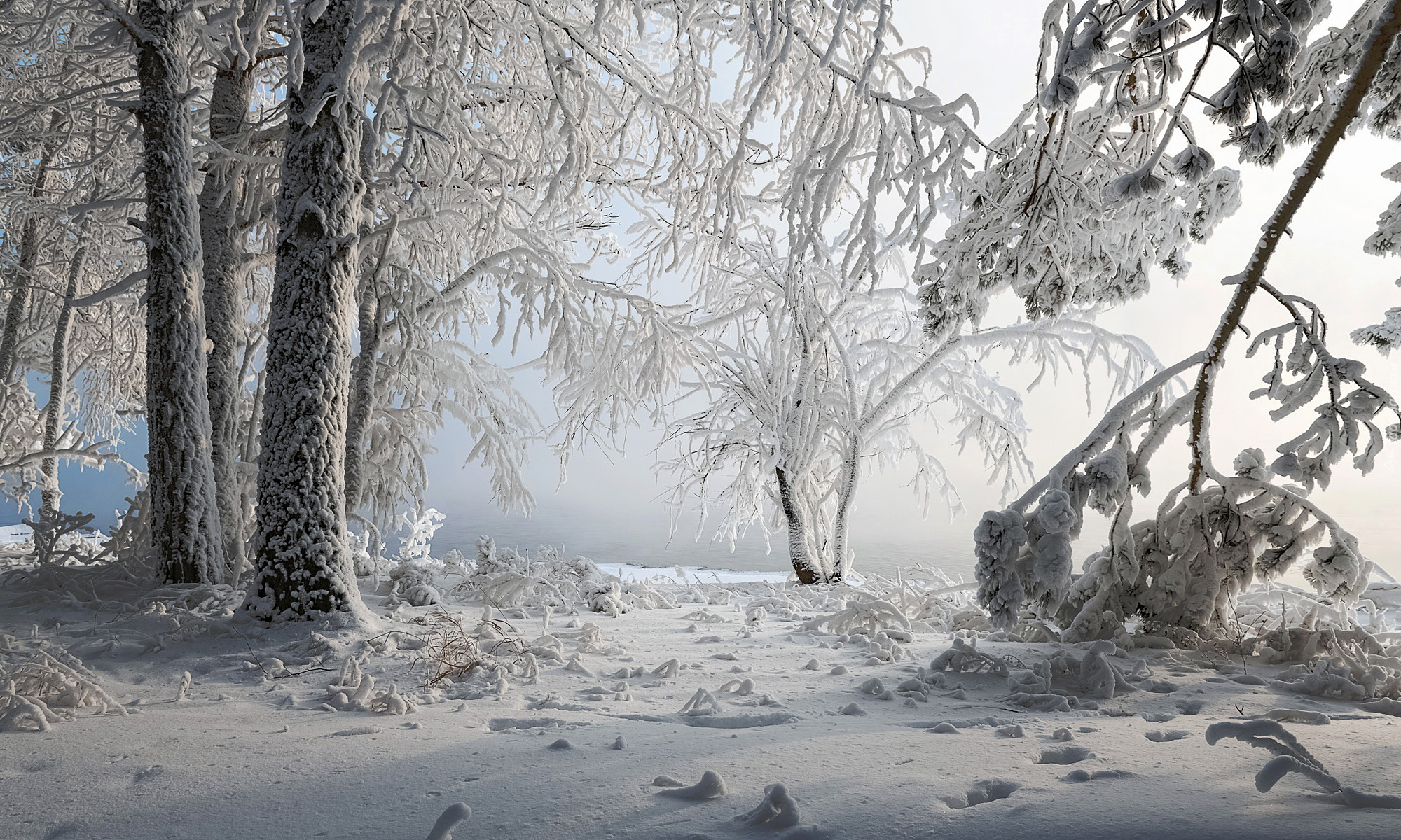 Edytor tapety: Ośnieżone gałęzie krzewów i drzew