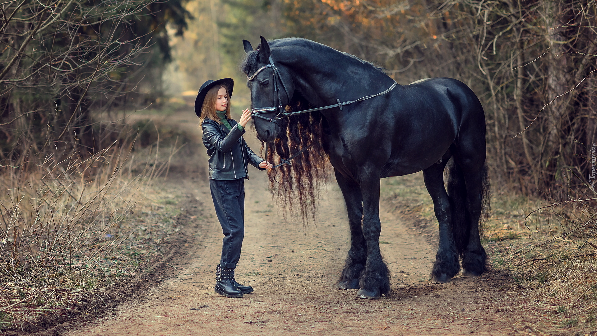 Edytor tapety: Dziewczynka z czarnym koniem