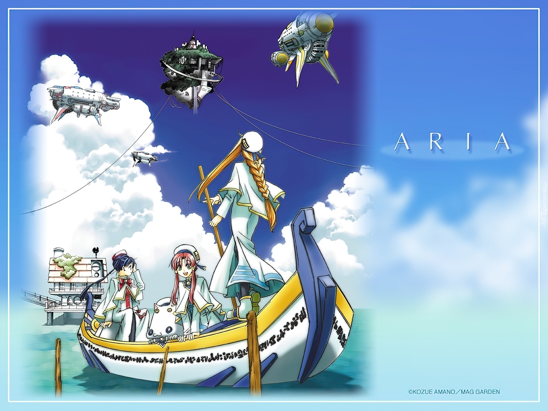 Edytor tapety: Aria, łódka, ludzie, sterowce