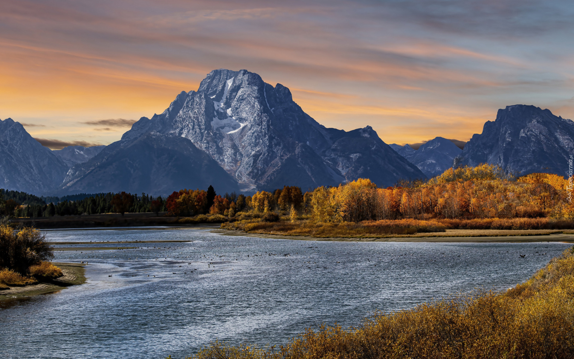 Edytor tapety: Rzeka Snake River na tle góry Mount Moran