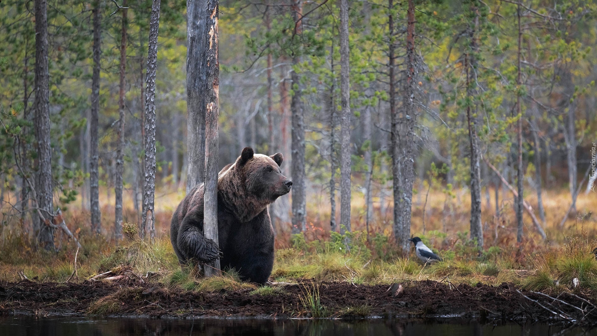 Edytor tapety: Niedźwiedź brunatny pod drzewem w lesie