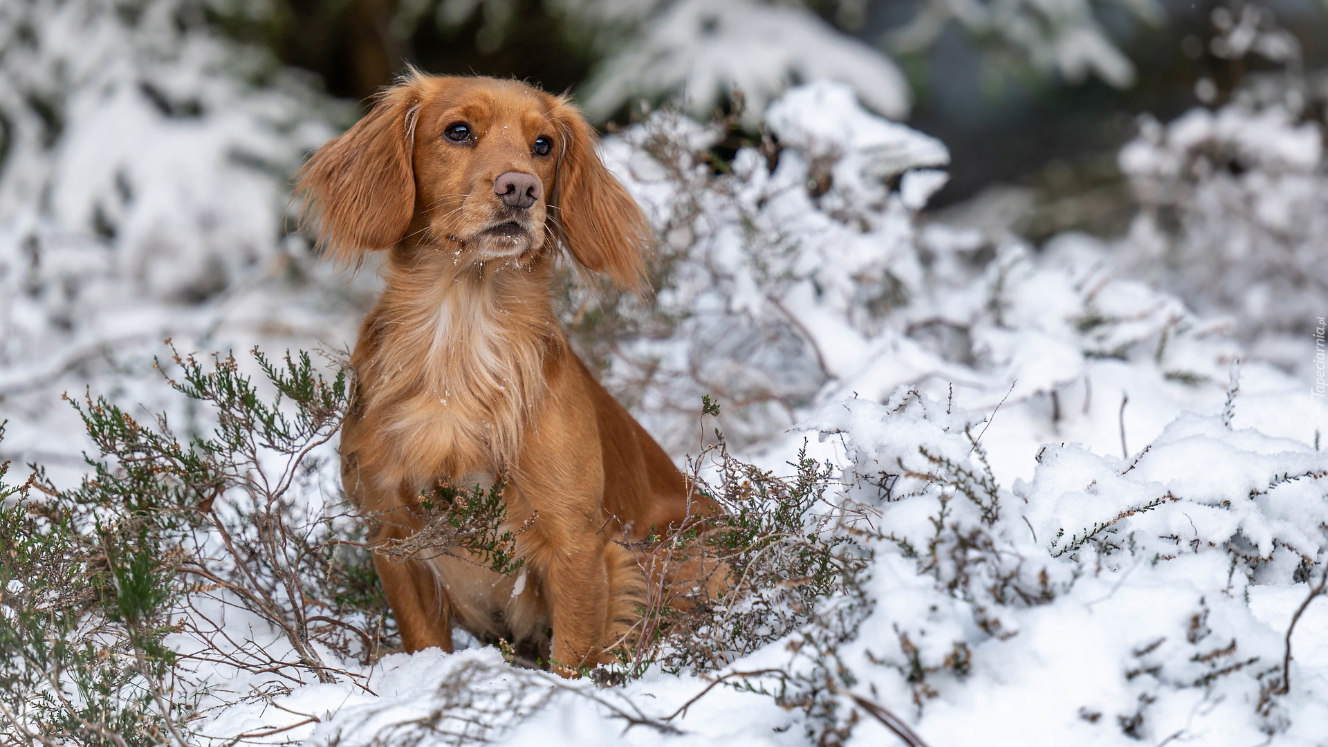 Edytor tapety: Working cocker spaniel na śniegu