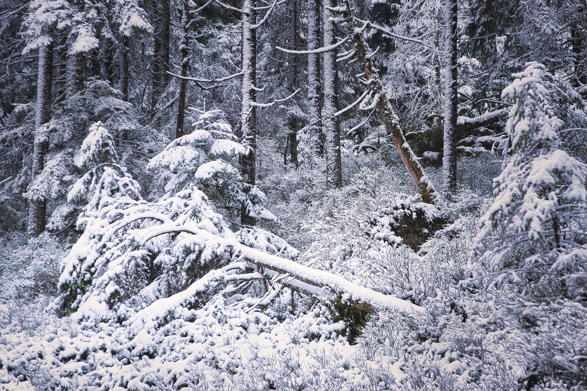 Edytor tapety: Powalone drzewa w lesie zimą