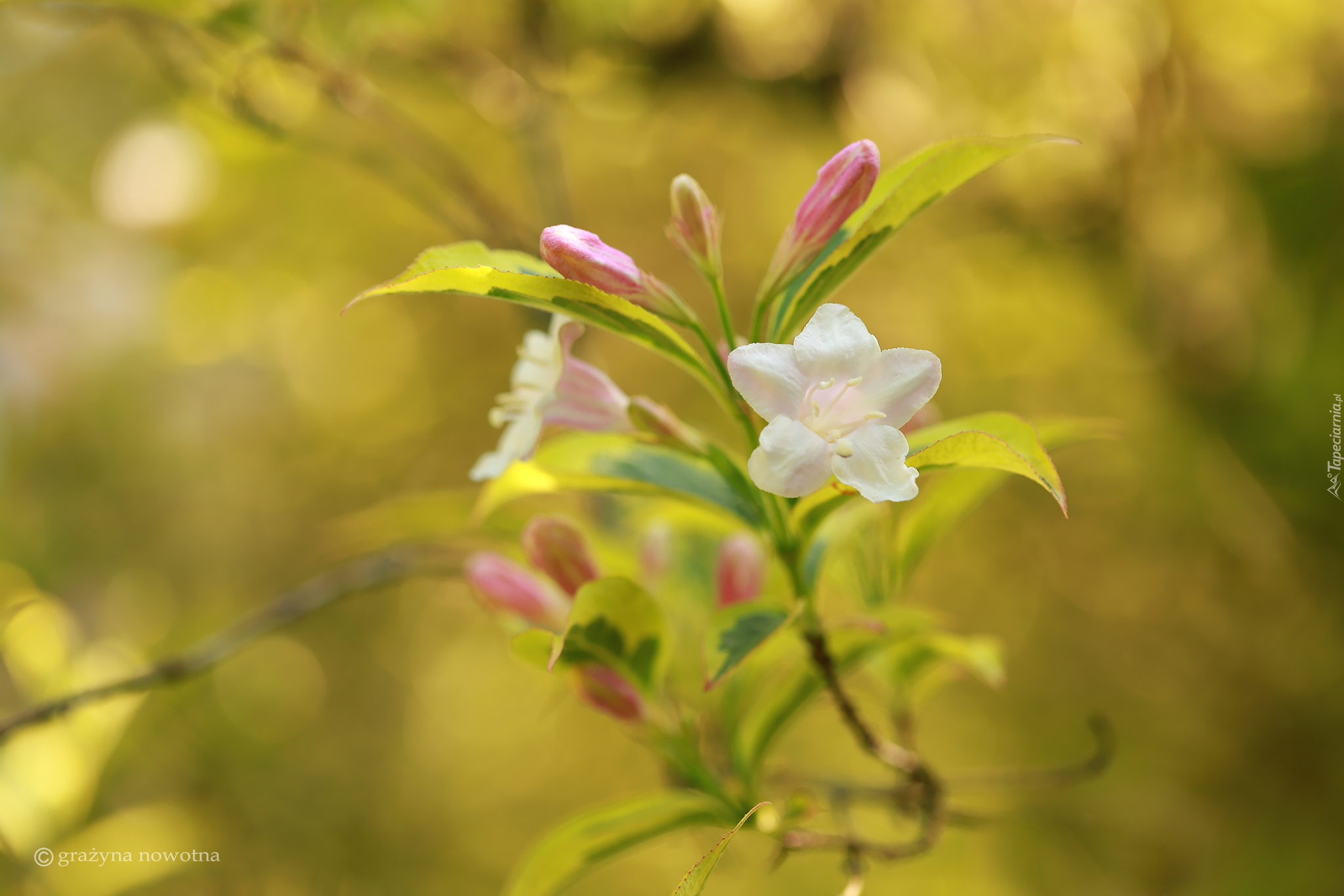 Edytor tapety: Gałązka z pąkami i białymi kwiatami