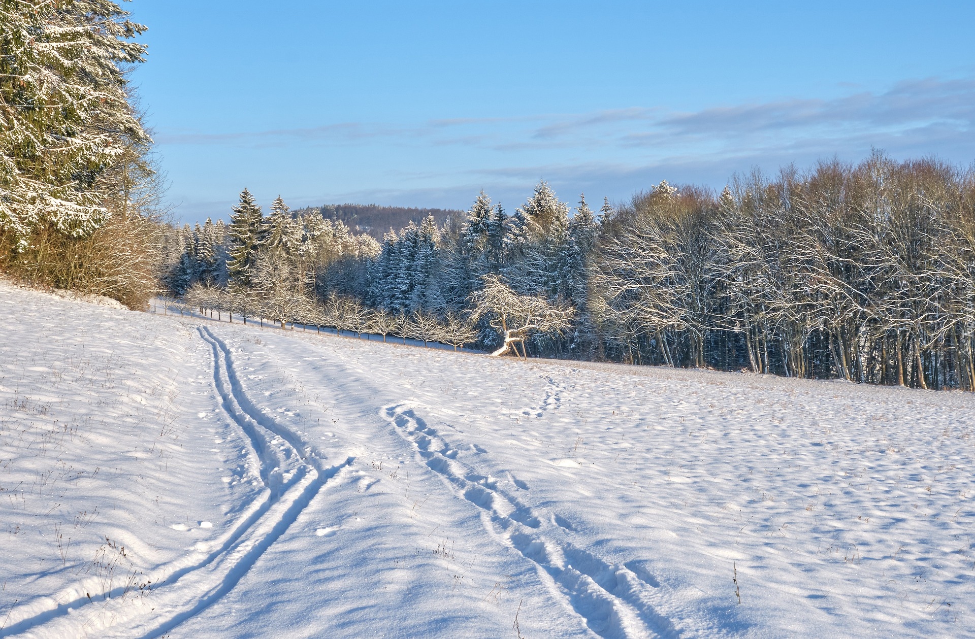 Edytor tapety: Ślady w śniegu na polanie