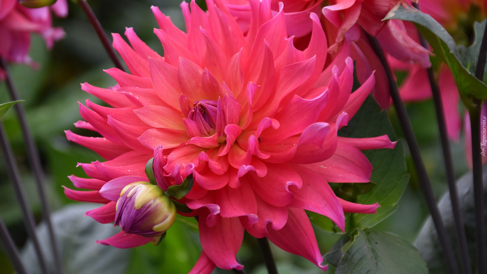Edytor tapety: Rozkwitnięta dalia z pąkiem