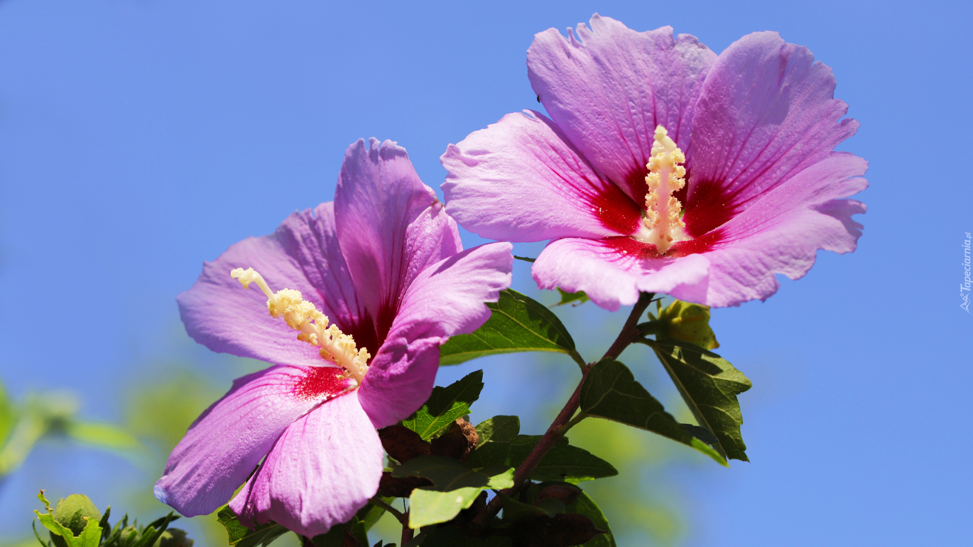 Edytor tapety: Hibiskusy na tle błękitnego nieba