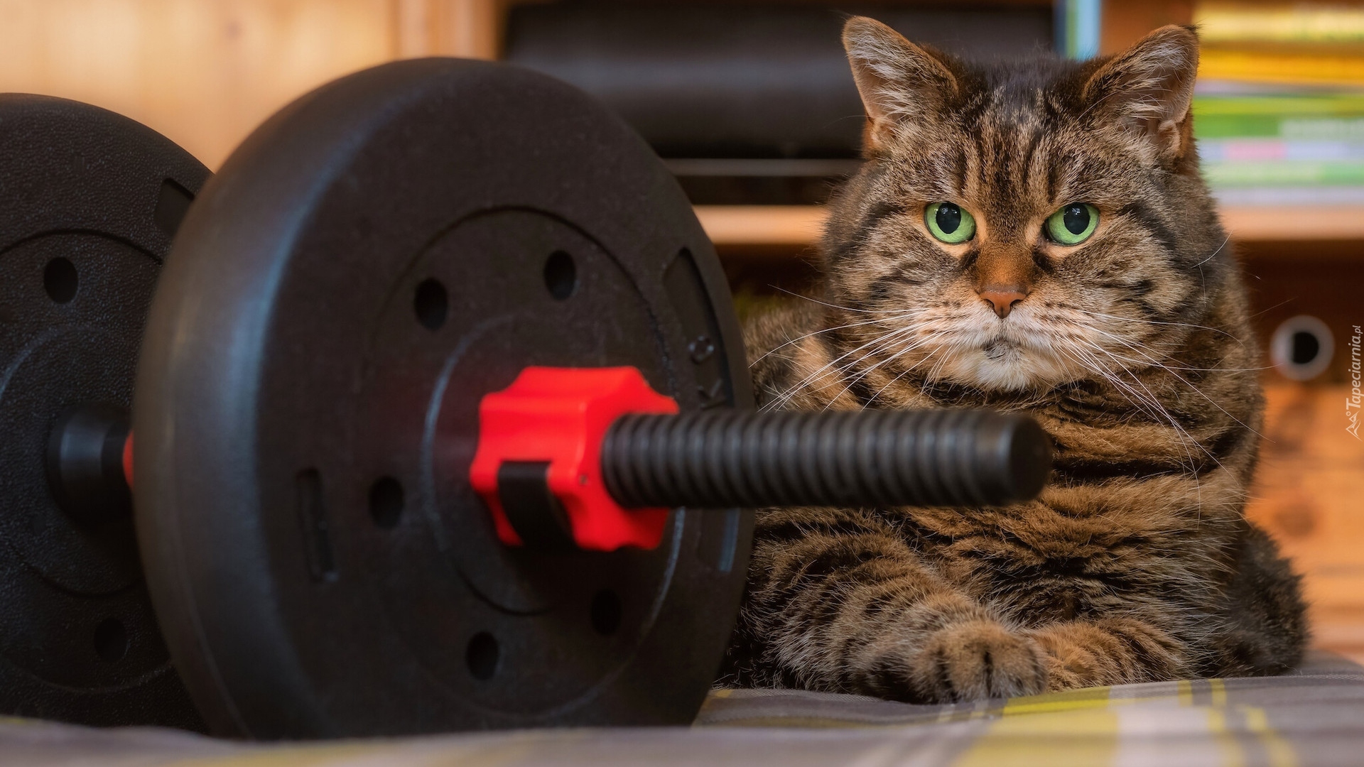 Edytor tapety: Bury kot obok ciężarka