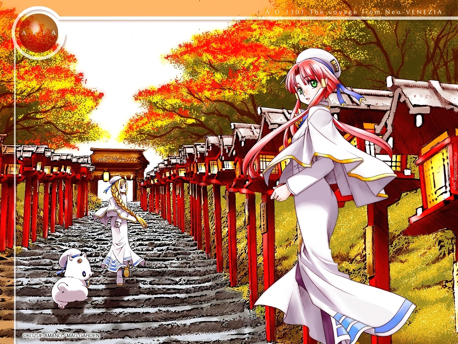 Edytor tapety: Aria, dziewczyny, schody, zwierze