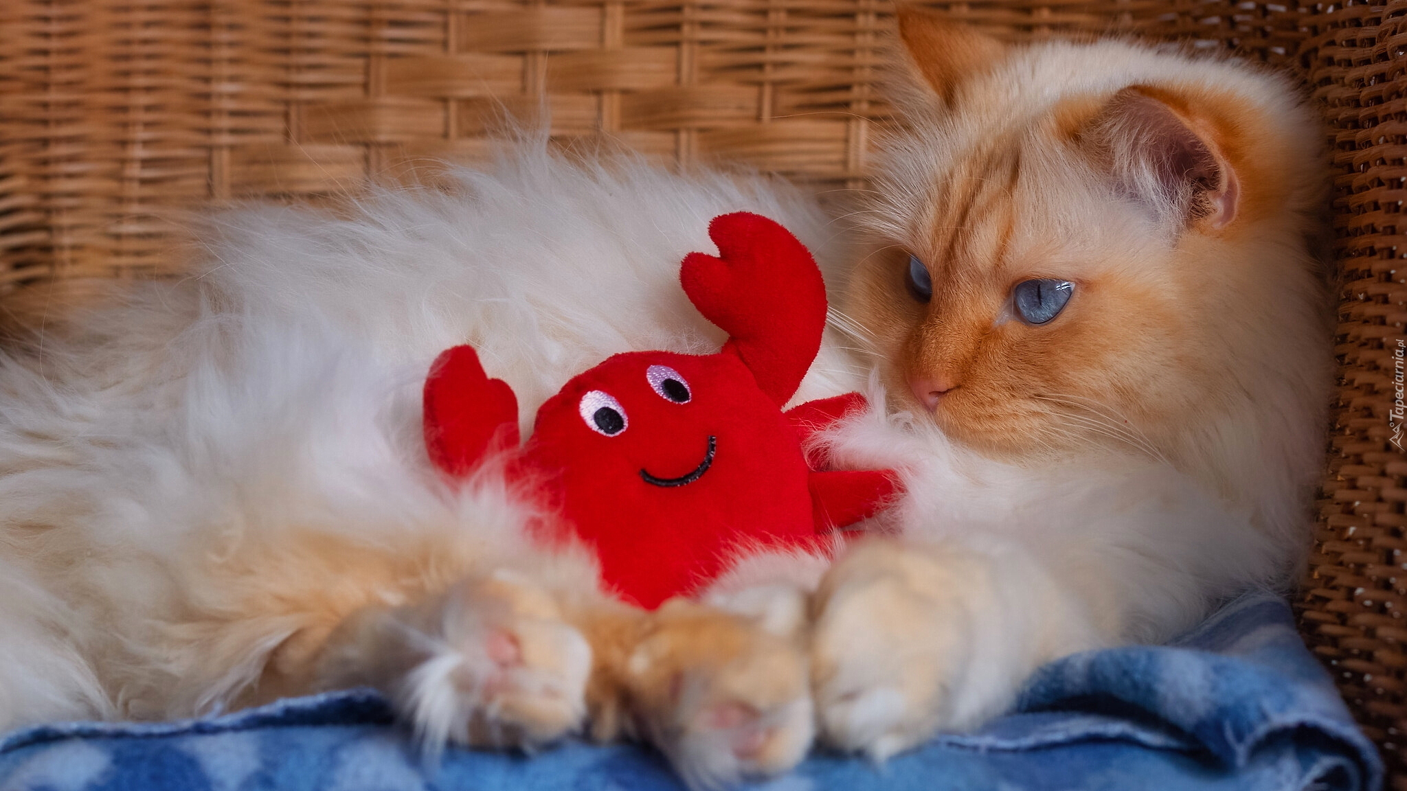 Edytor tapety: Rudawy kot z pluszowym krabem
