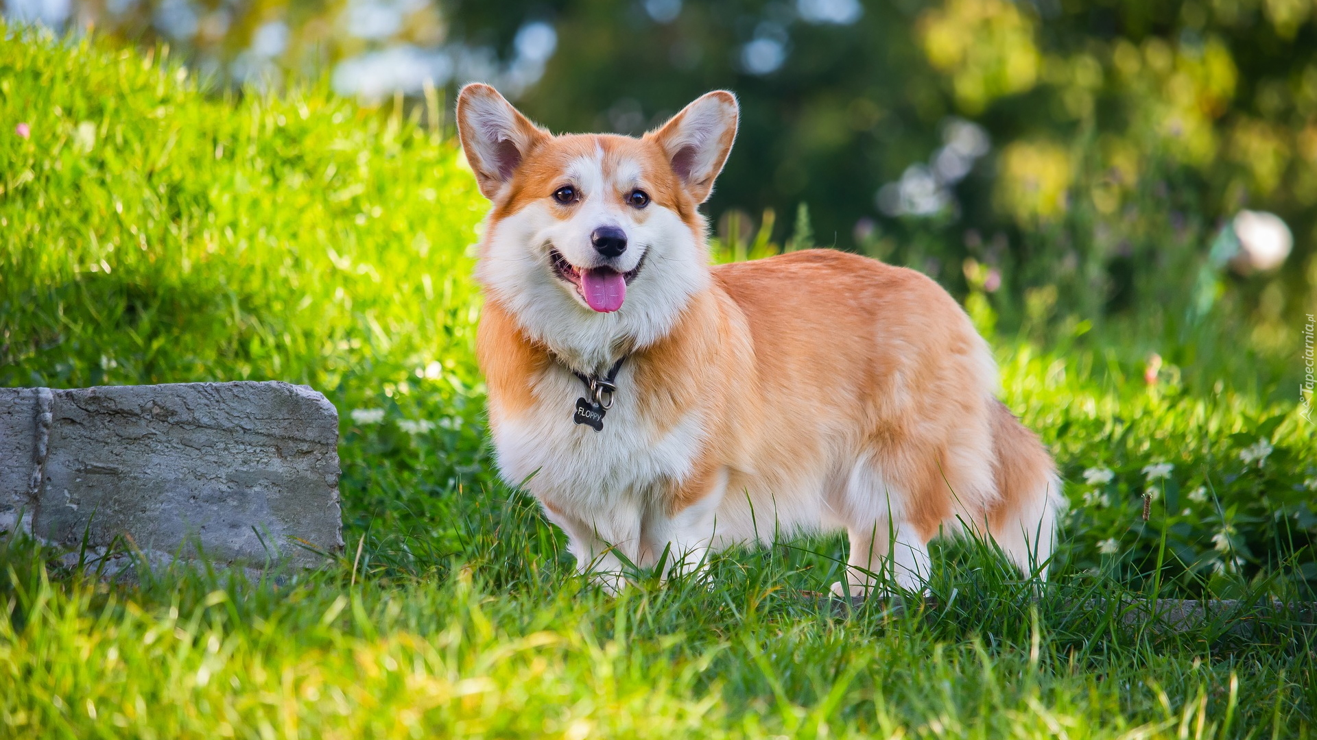 Edytor tapety: Welsh corgi pembroke obok kamienia