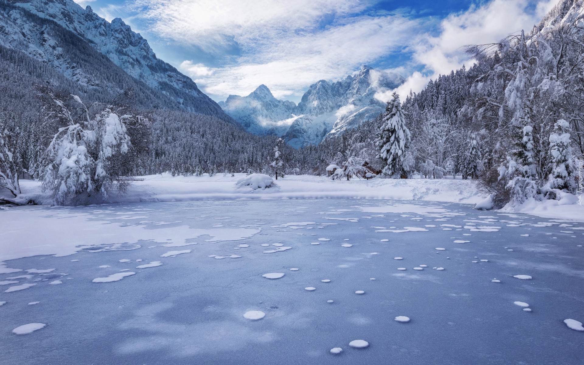 Edytor tapety: Zamarznięte jezioro Lake Jasna w Alpach Julijskich