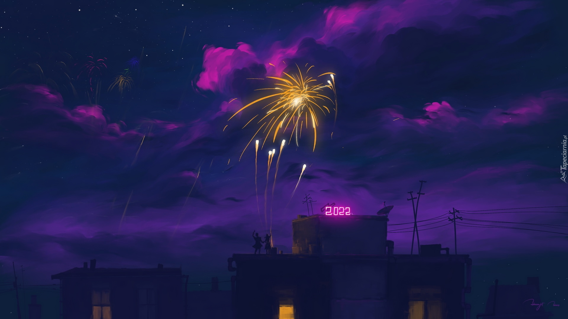 Edytor tapety: Powitanie Nowego Roku 2022 na dachu wieżowca