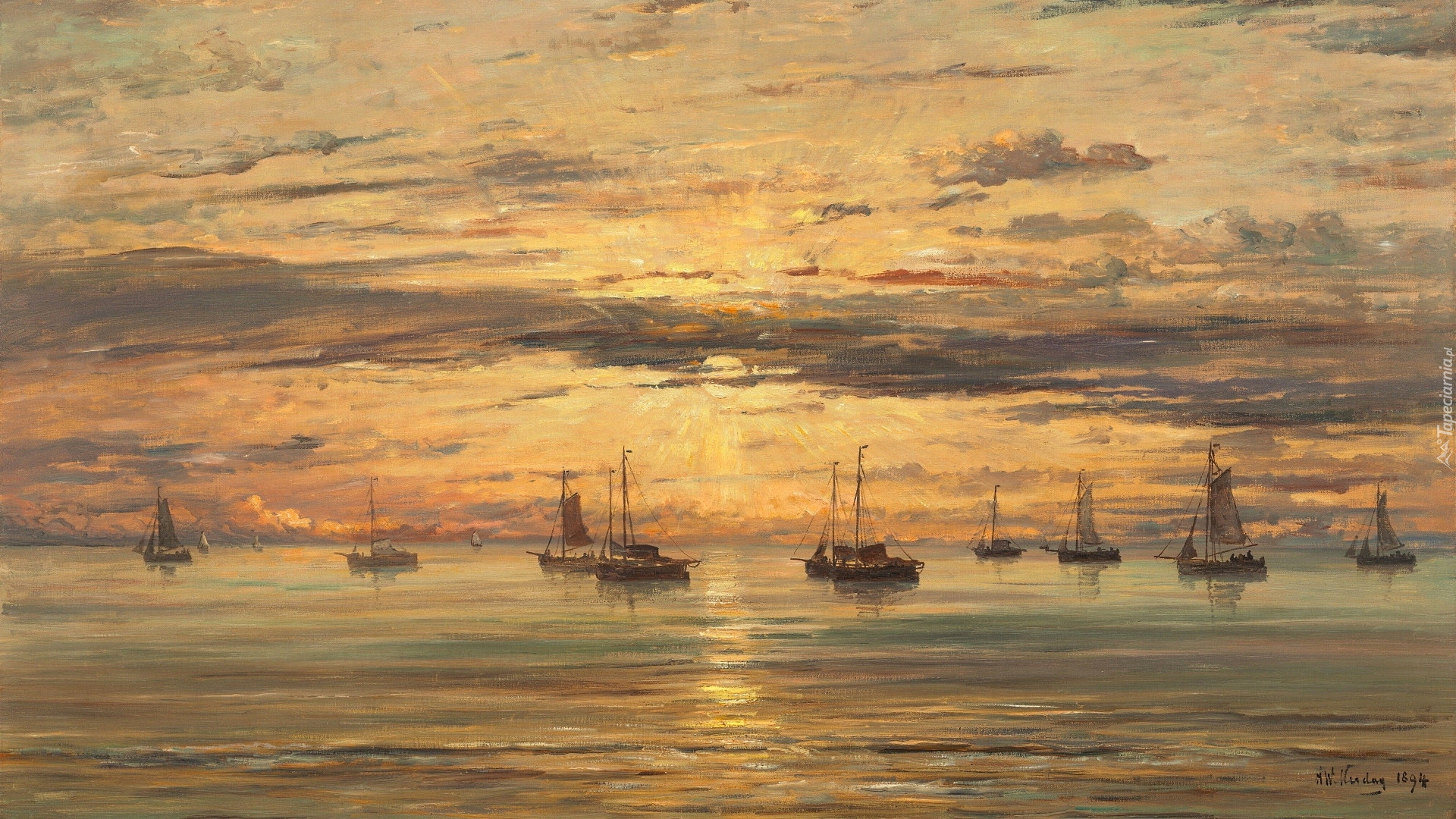 Edytor tapety: Żaglówki na morzu w malarstwie Hendrika Willema Mesdaga