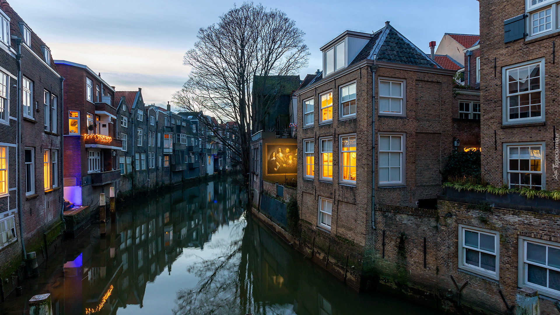 Edytor tapety: Domy nad kanałem w holenderskim mieście Dordrecht