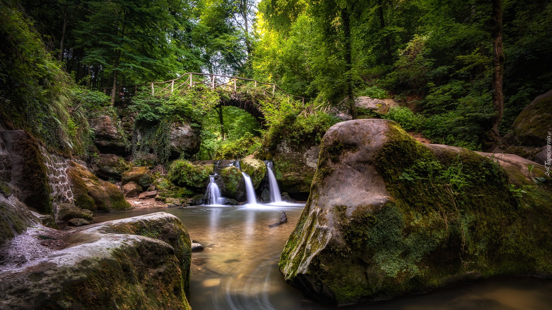 Edytor tapety: Wodospad Schiessentumpel pod kamiennym mostem