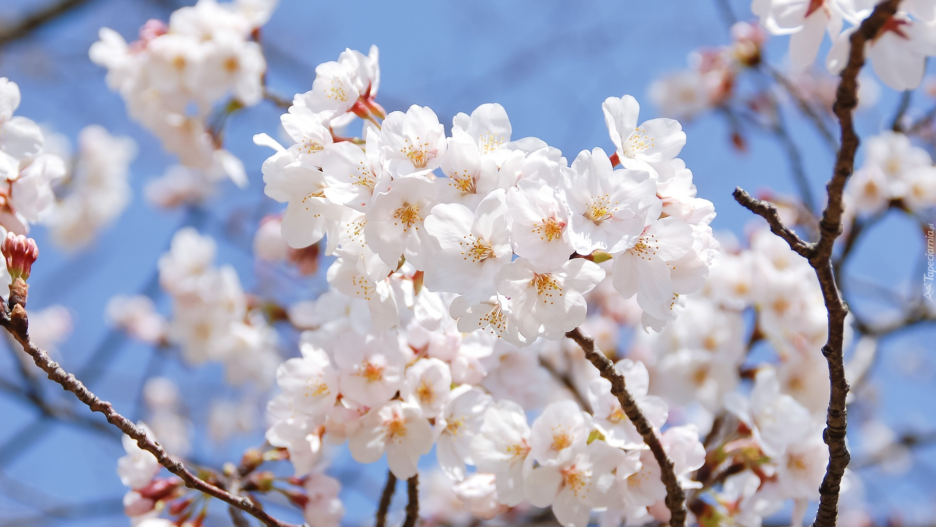 Edytor tapety: Białe kwiaty wiśni japońskiej