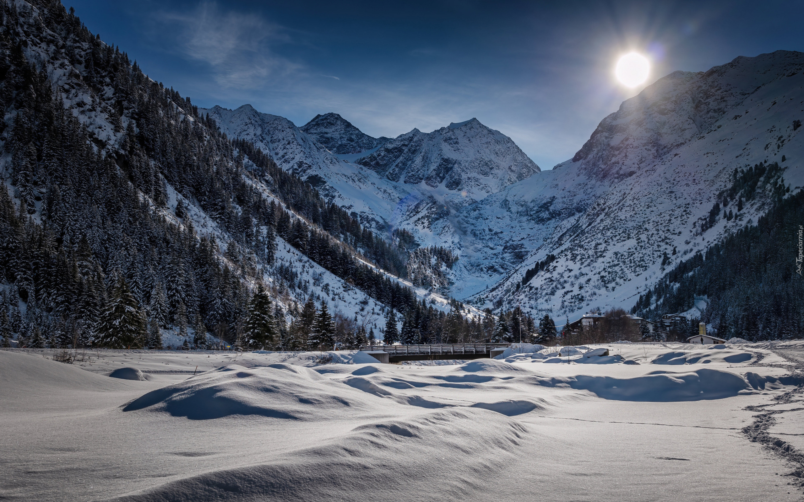 Edytor tapety: Zaśnieżone góry w słonecznym blasku