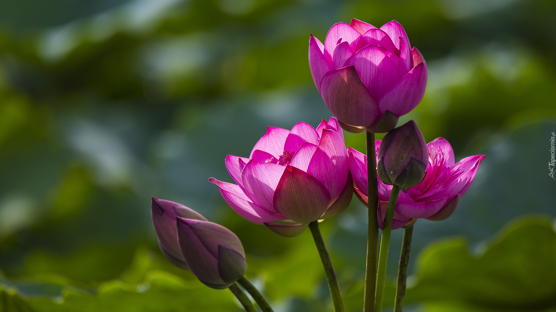 Edytor tapety: Trzy różowe lotosy z pąkami