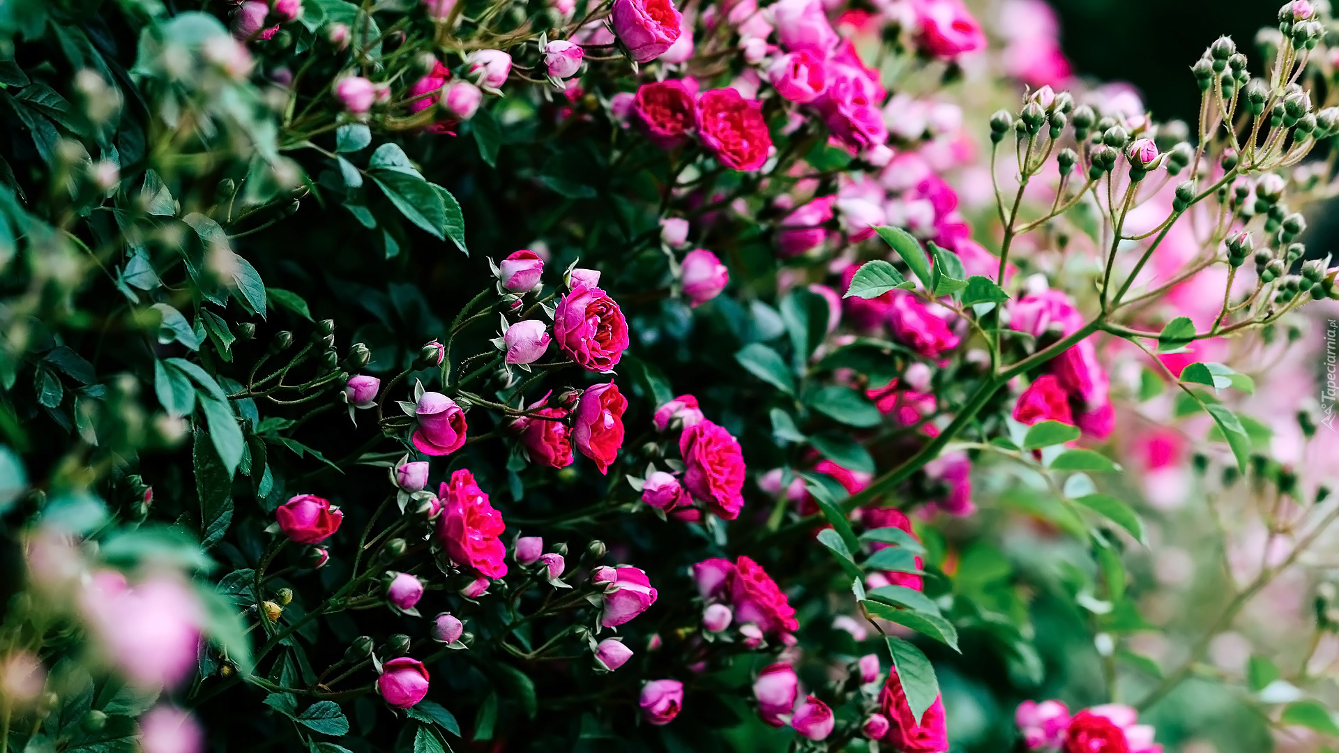 Edytor tapety: Drobne różowe różyczki z pąkami
