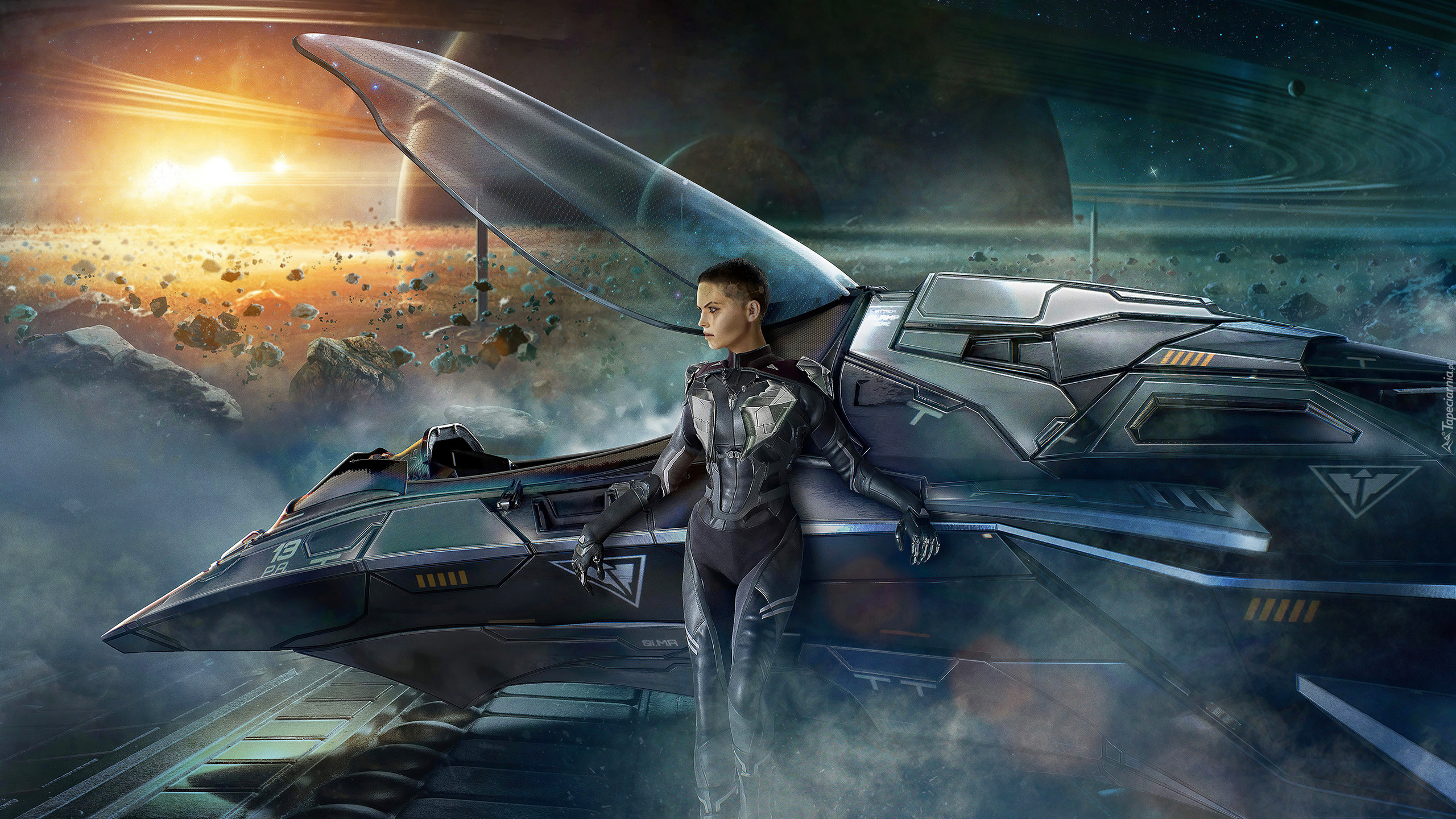 Edytor tapety: Kobieta przy statku kosmicznym w grze Chorus