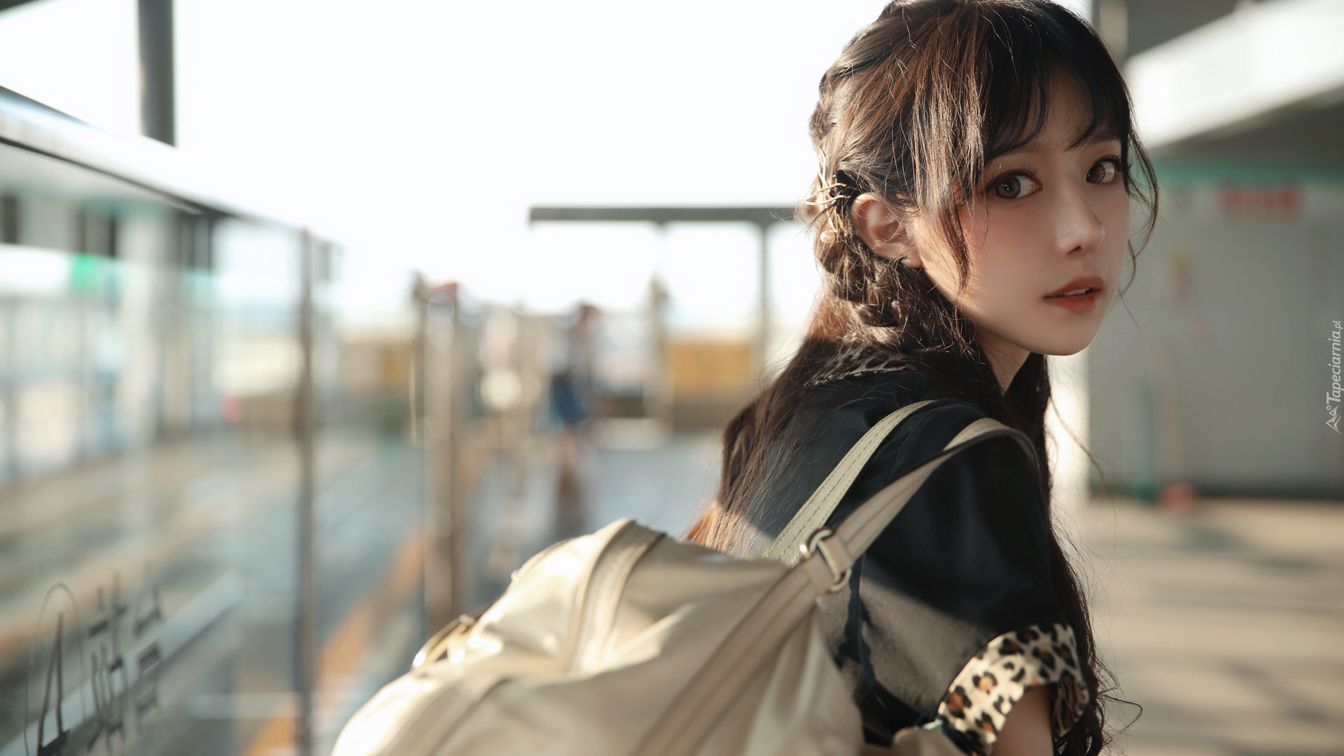 Edytor tapety: Ciemnowłosa dziewczyna z torbą