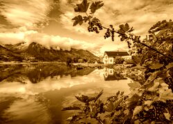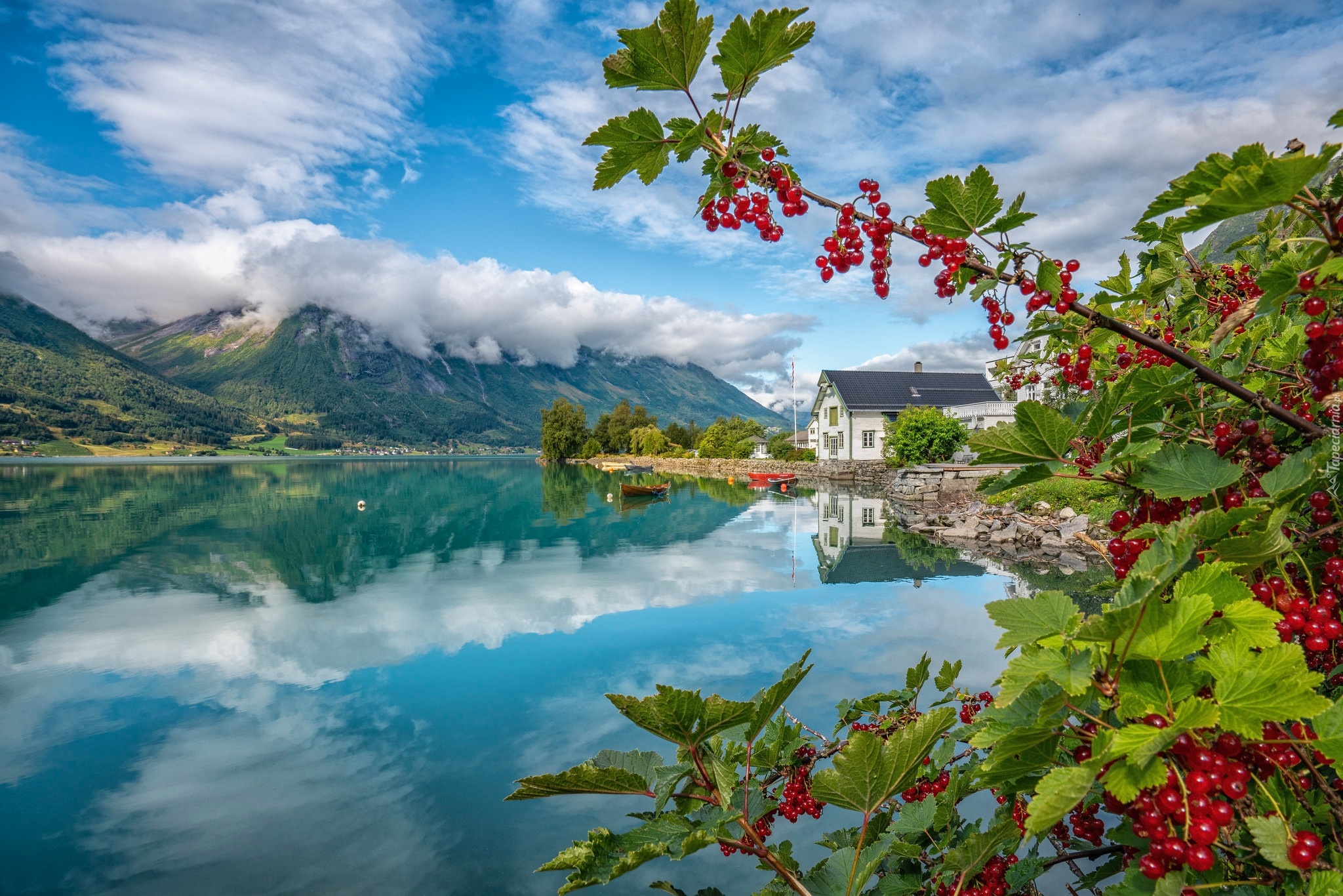 Edytor tapety: Dom nad Jeziorem Oppstrynsvatnet w Norwegii