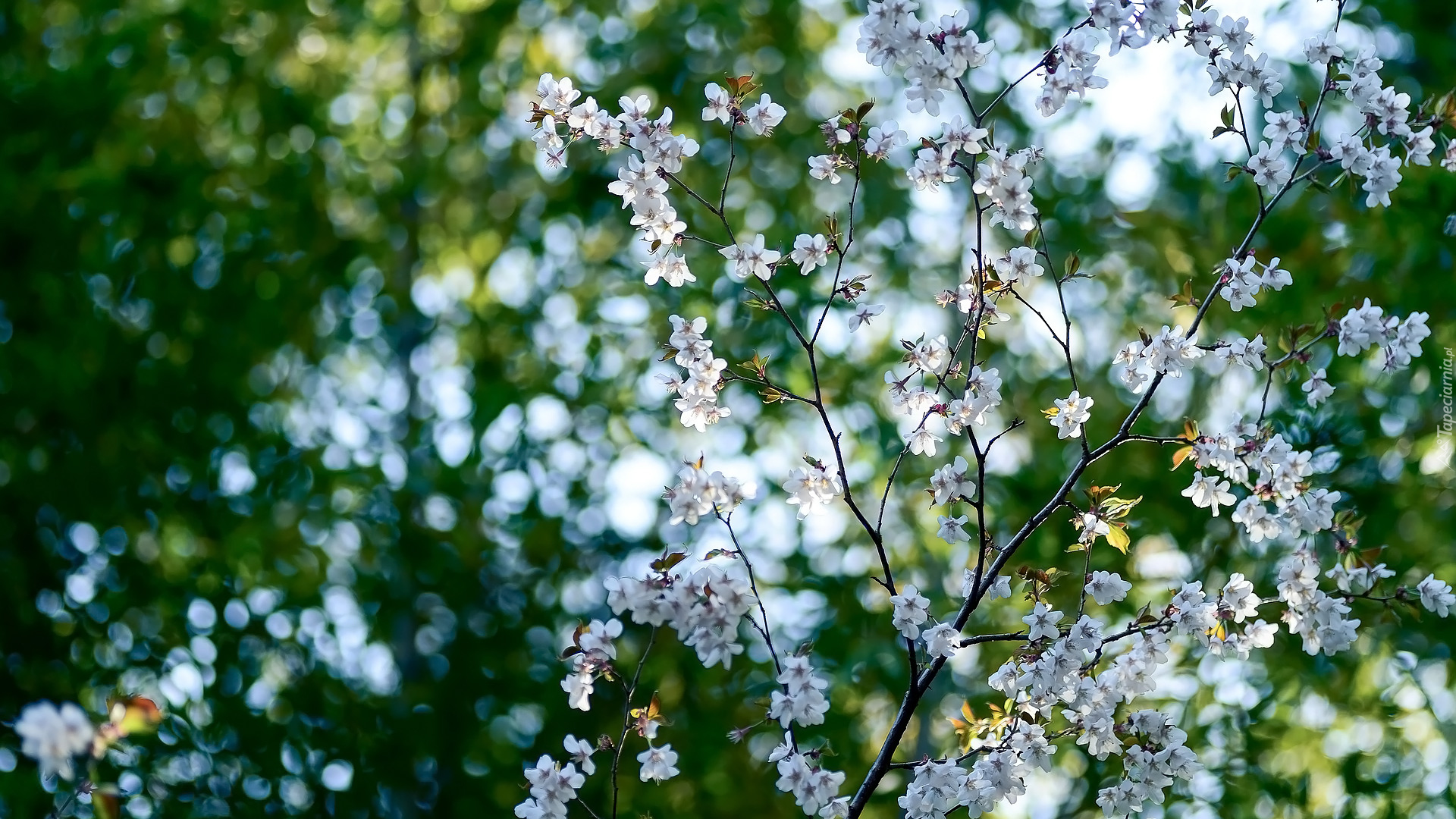 Edytor tapety: Gałązki z białymi kwiatami wiśni