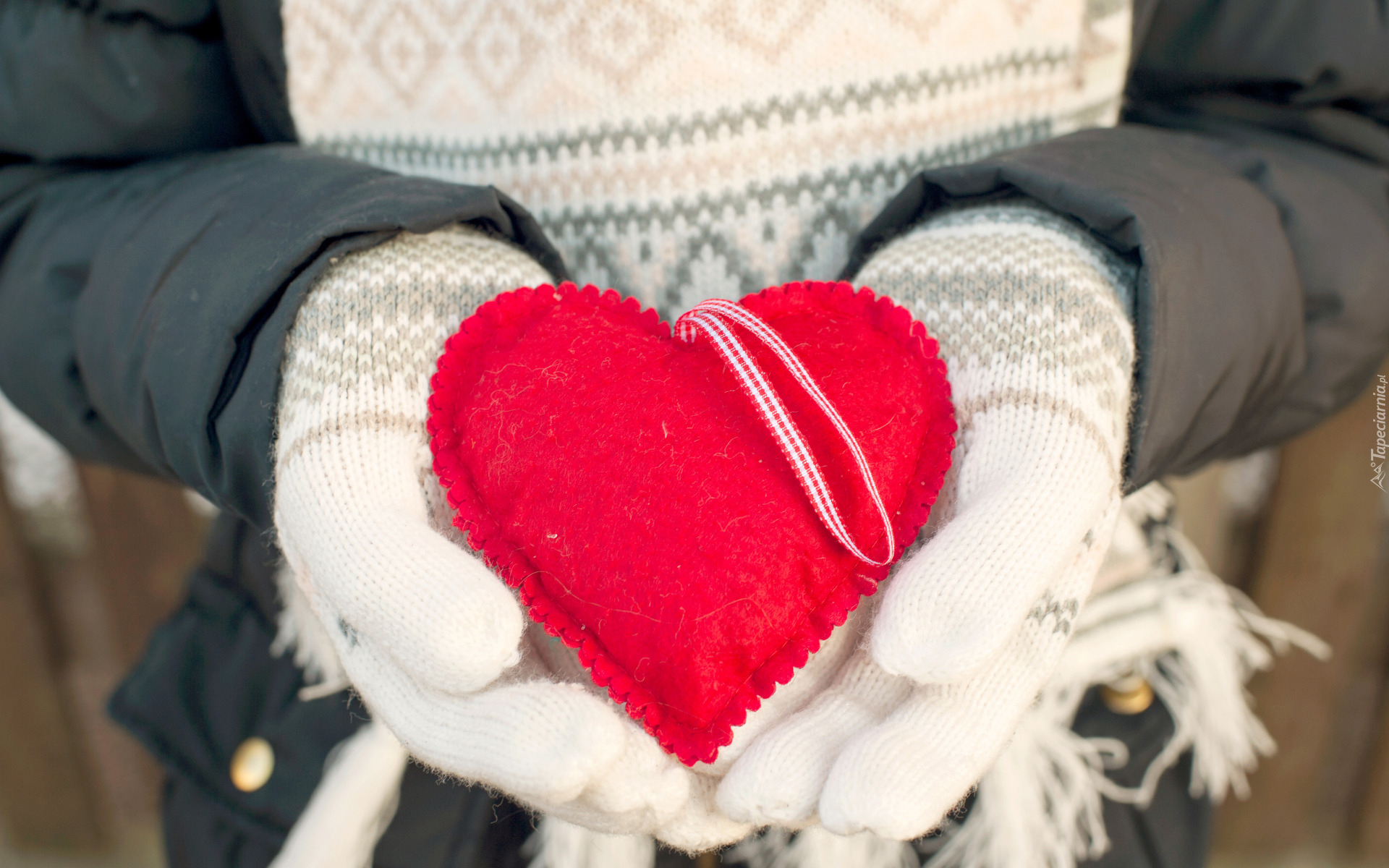 Edytor tapety: Dłonie w rękawiczkach trzymające czerwone serce