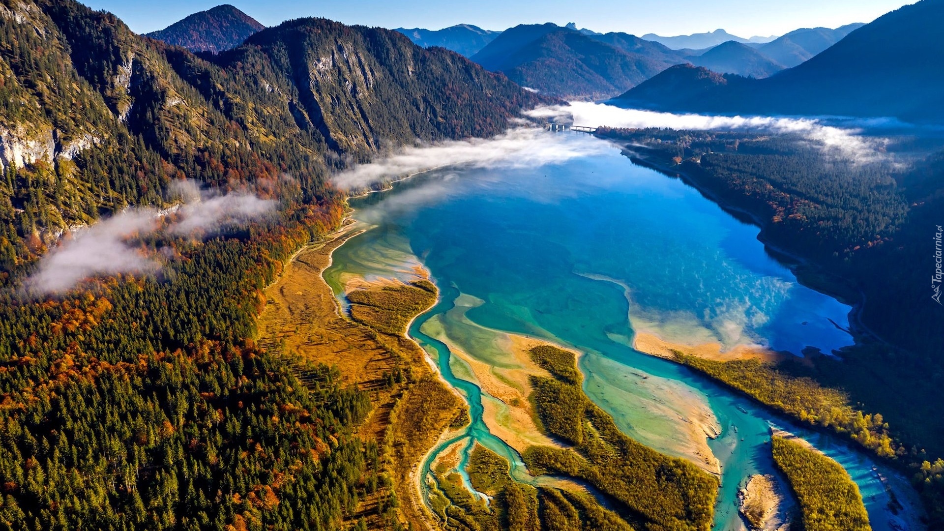 Edytor tapety: Jezioro Sylvenstein i rzeka Isar z lotu ptaka