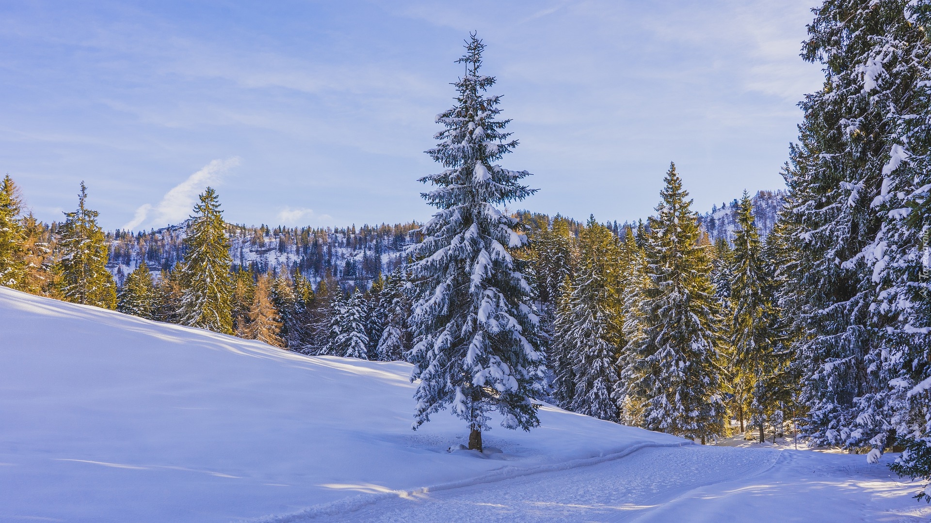 Edytor tapety: Ośnieżone drzewa przy zaśnieżonej drodze
