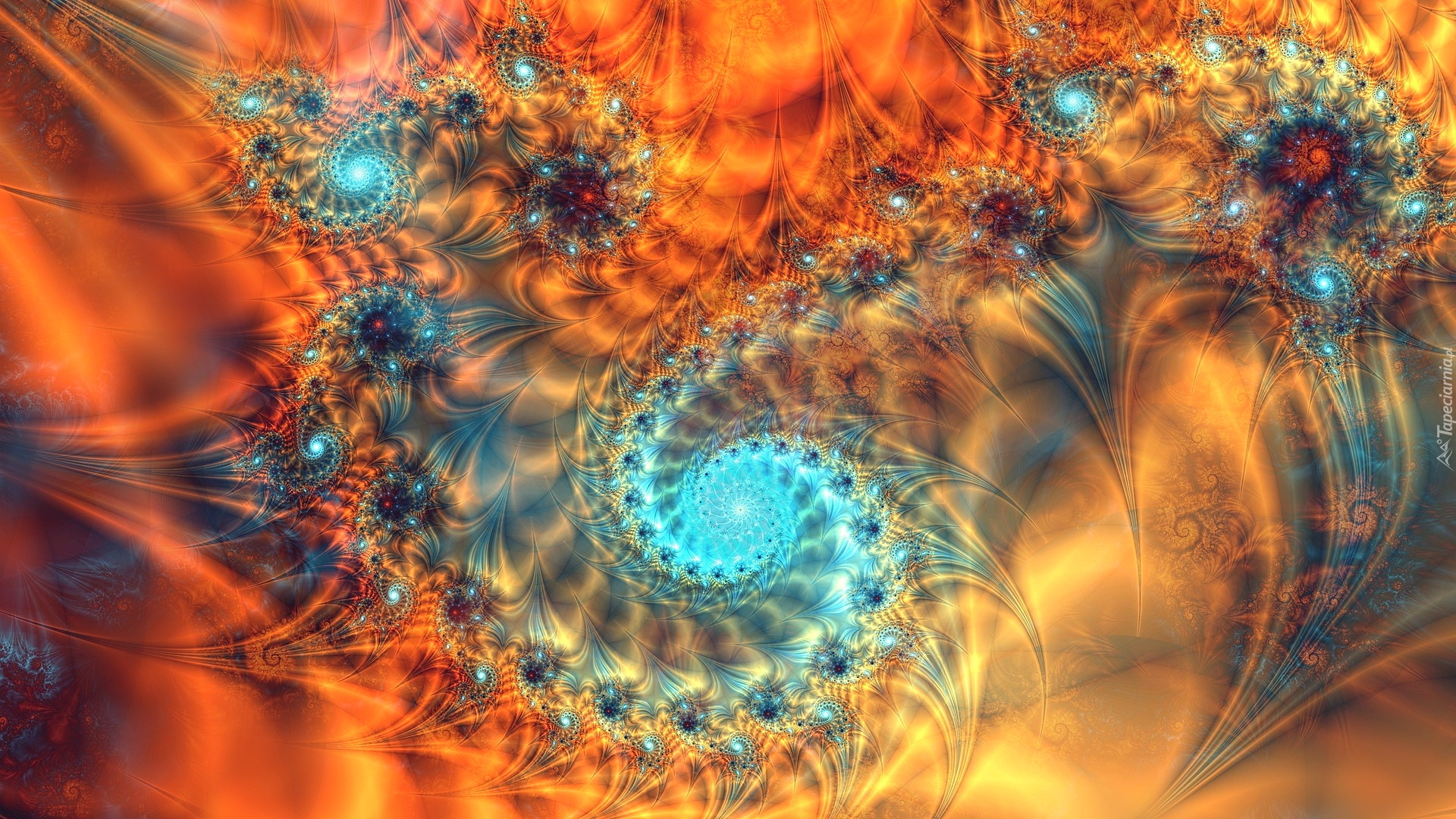 Edytor tapety: Niebieskie spirale na pomarańczowym tle