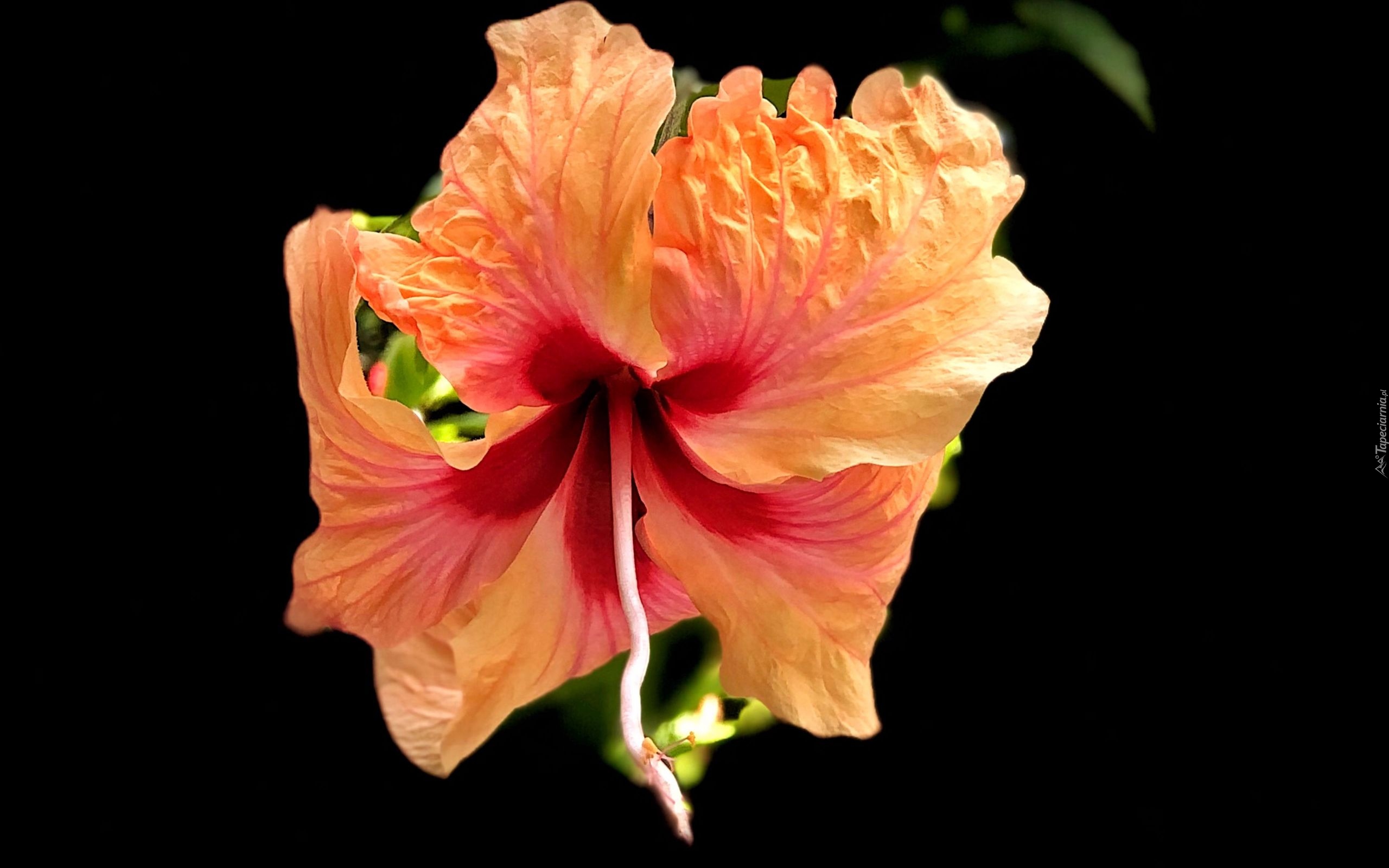 Edytor tapety: Pomarańczowy kwiat hibiskusa na ciemnym tle