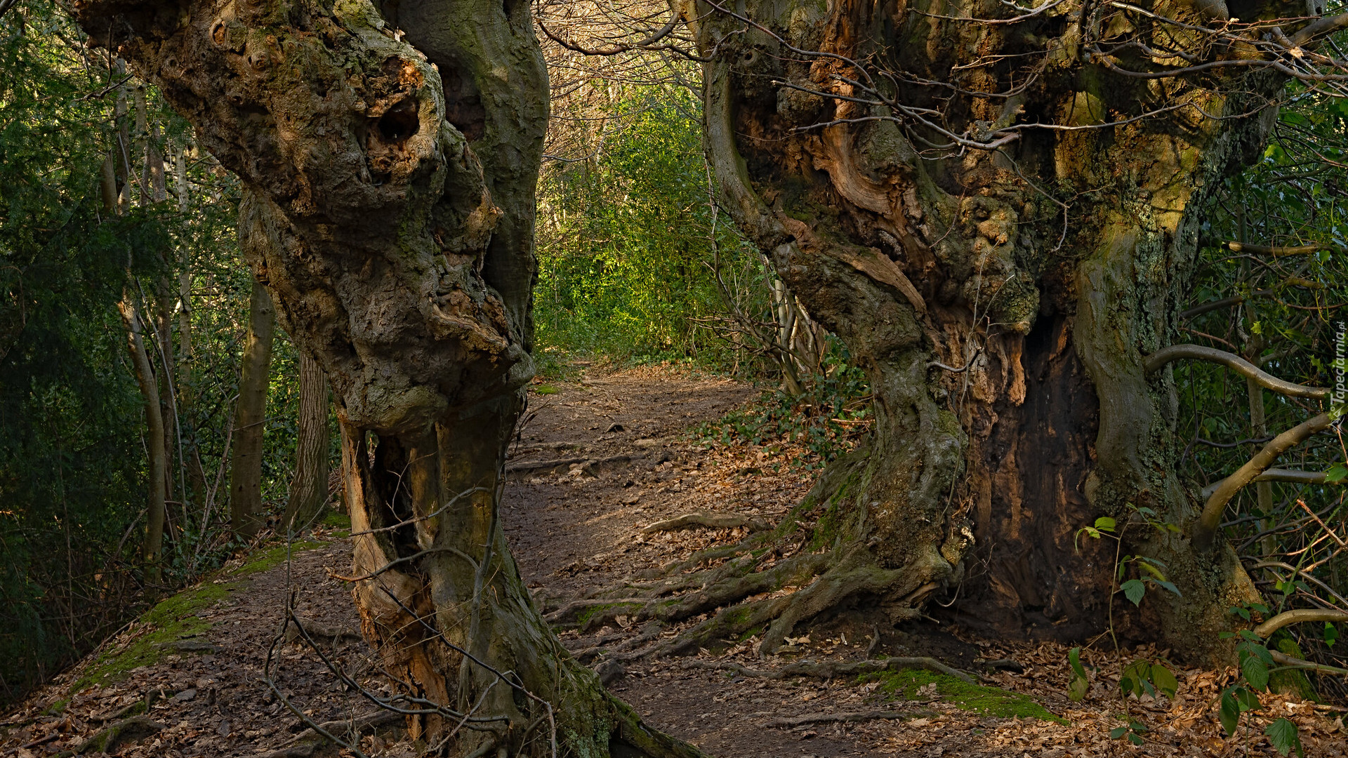 Edytor tapety: Stare drzewa na leśnej ścieżce