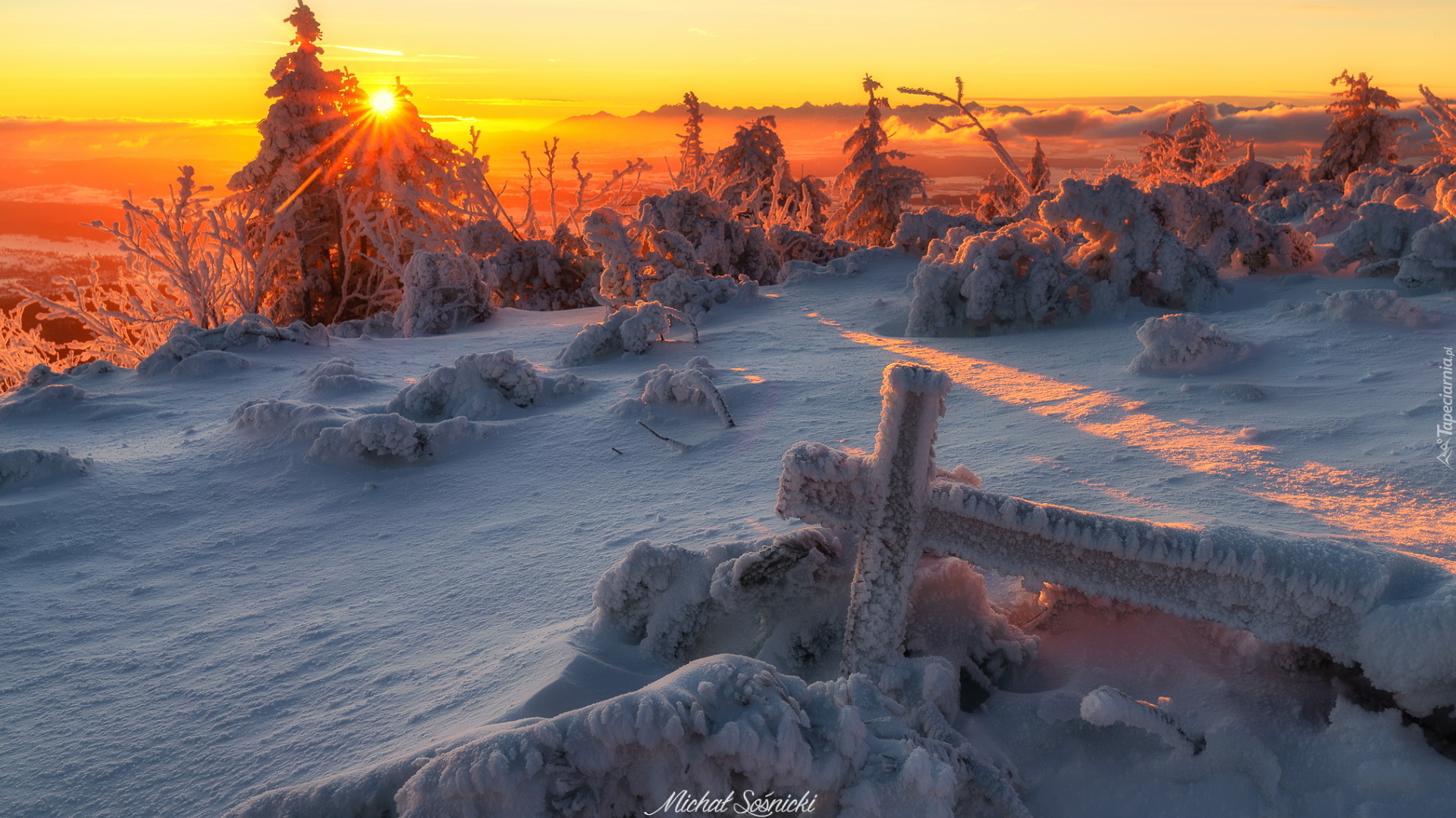Edytor tapety: Ośnieżone drzewa na Babiej Górze w blasku słońca