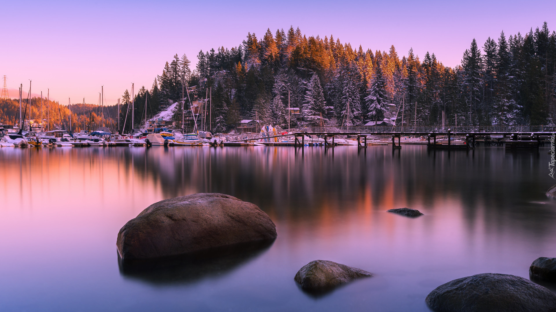 Edytor tapety: Motorówki w przystani na jeziorze