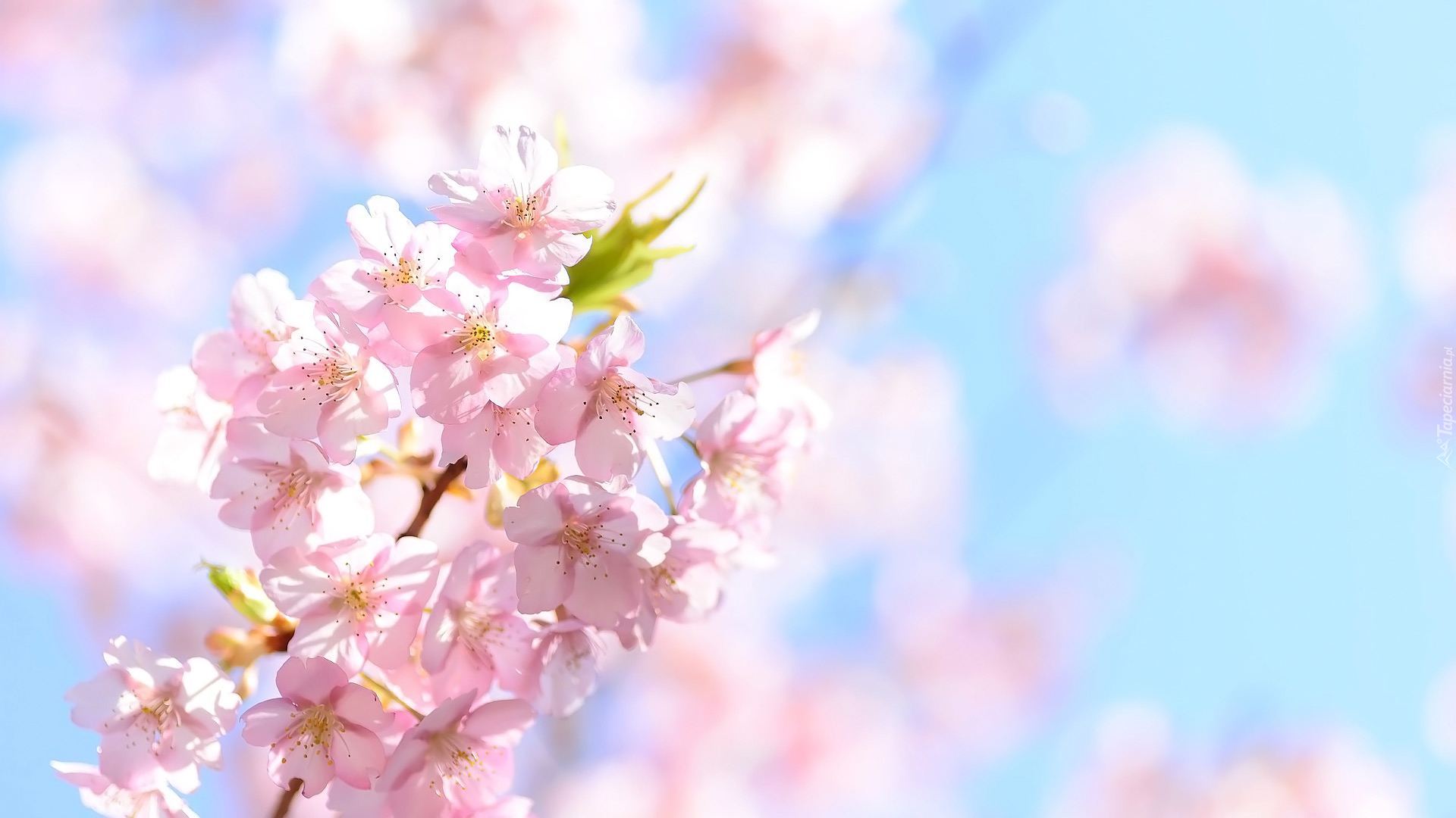 Edytor tapety: Gałązka z różowymi kwiatami wiśni japońskiej