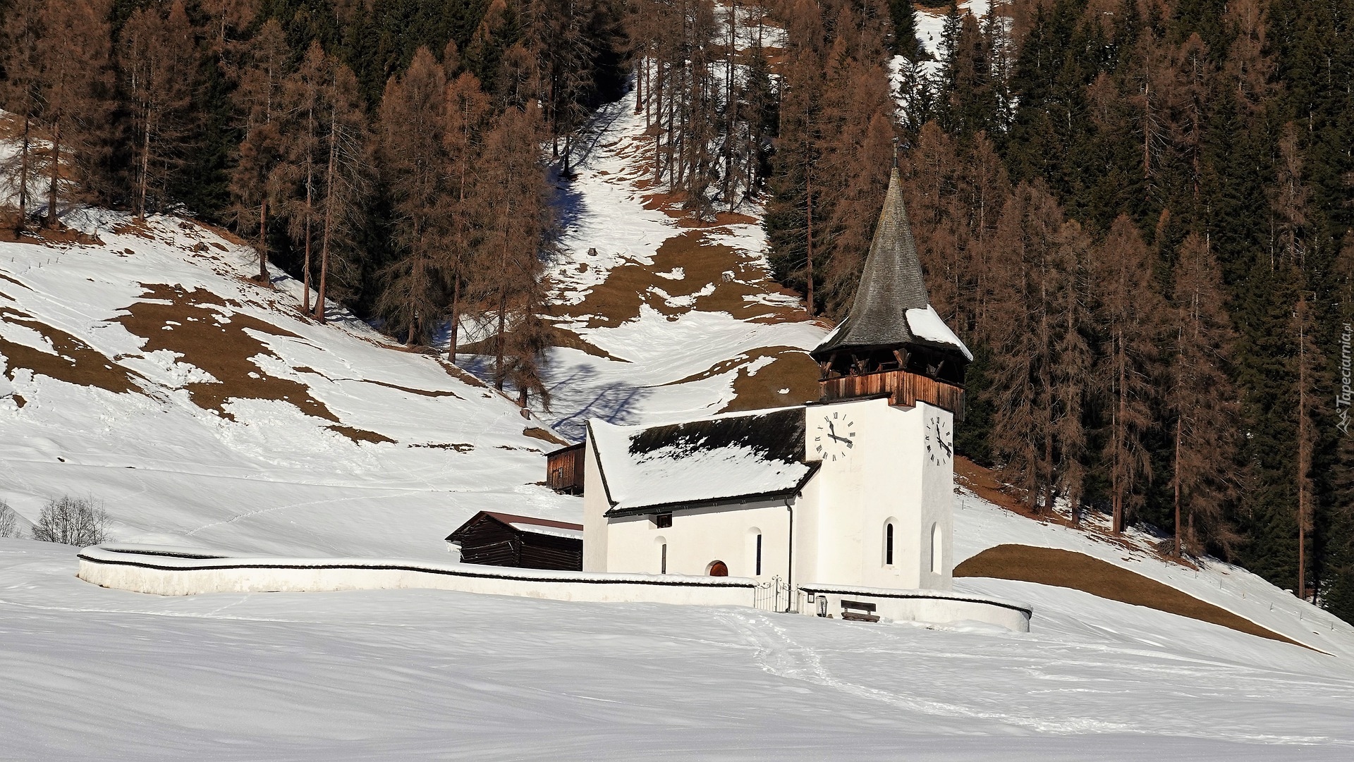 Edytor tapety: Kościół Frauenkirch w Davos zimową porą