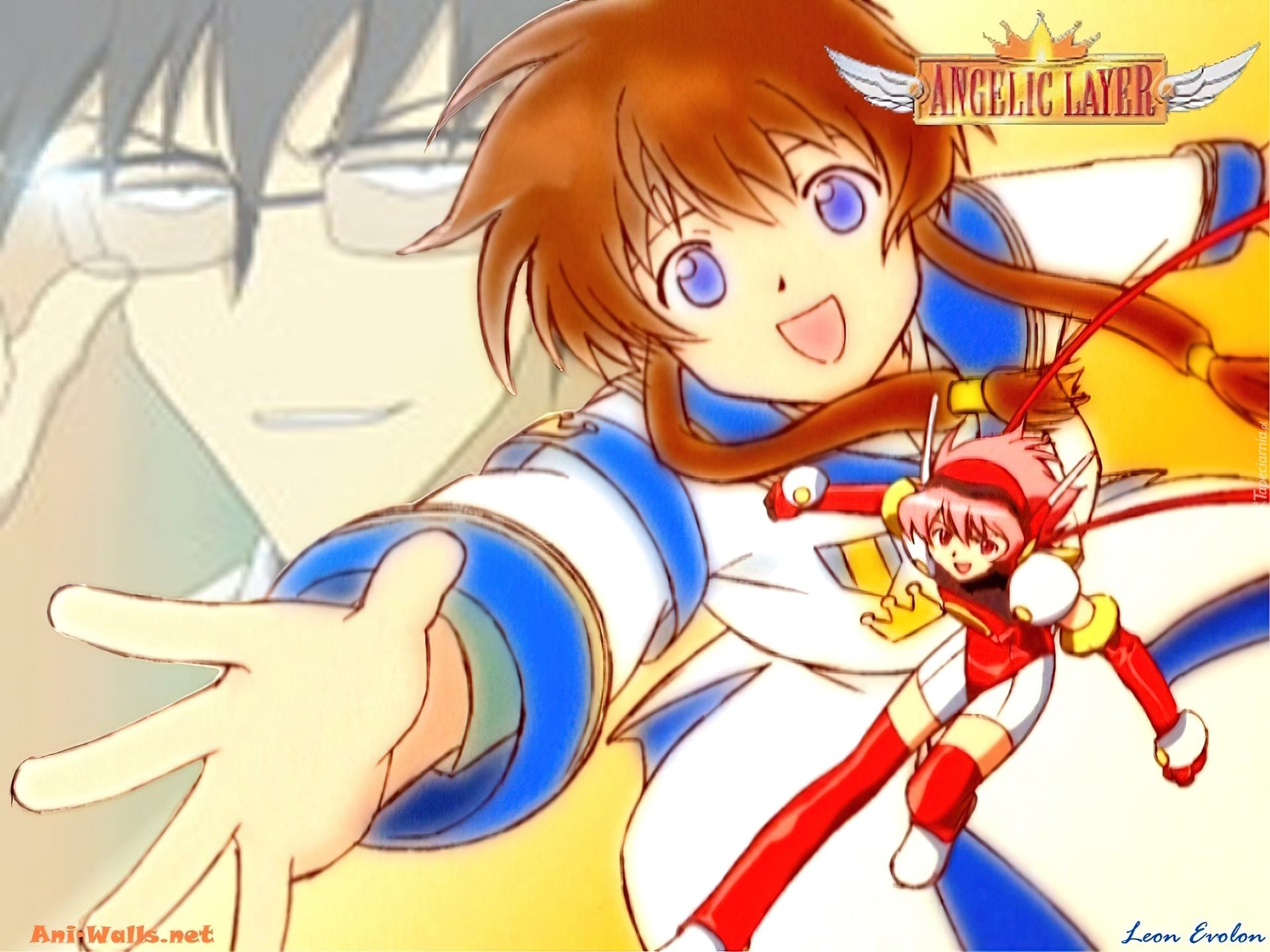 Edytor tapety: Angelic Layer, postacie, napis, okulary