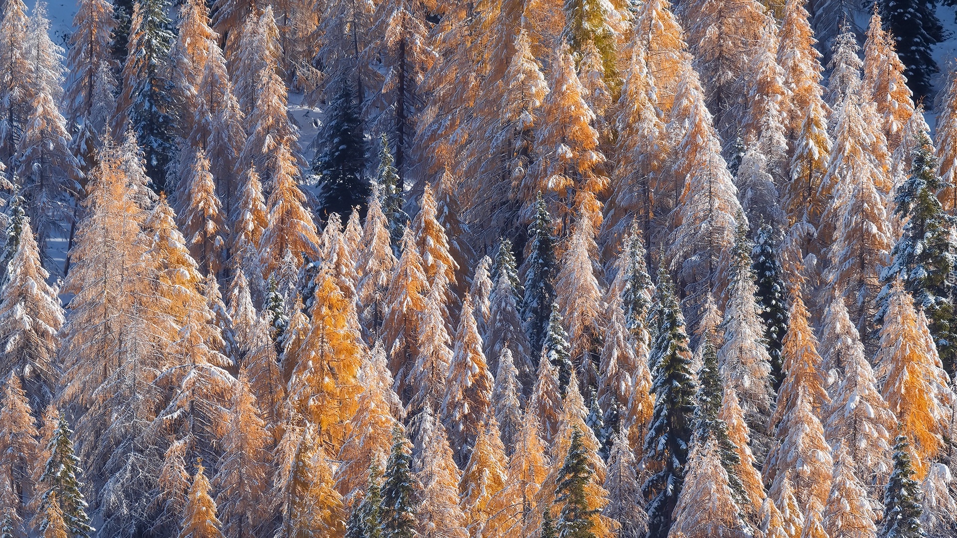 Edytor tapety: Ośnieżone i pożółkłe drzewa