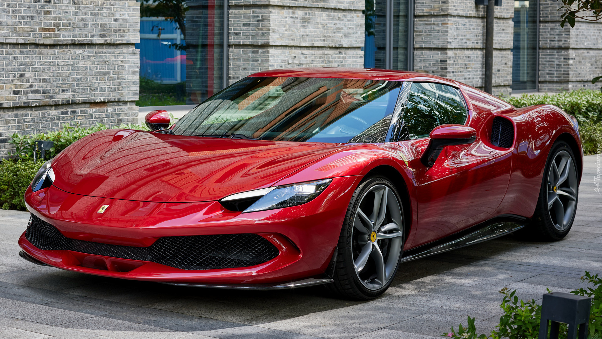 Edytor tapety: Ferrari 296 GTB przed budynkiem