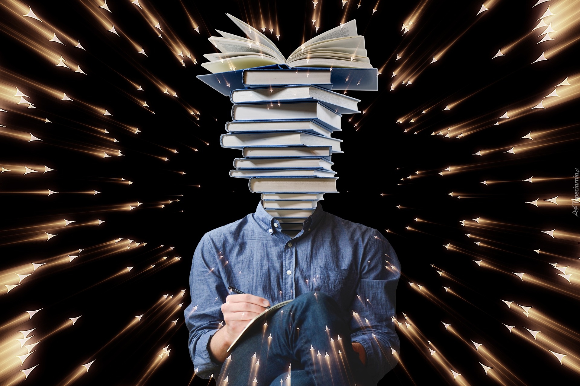 Edytor tapety: Mężczyzna z książkami zamiast głowy